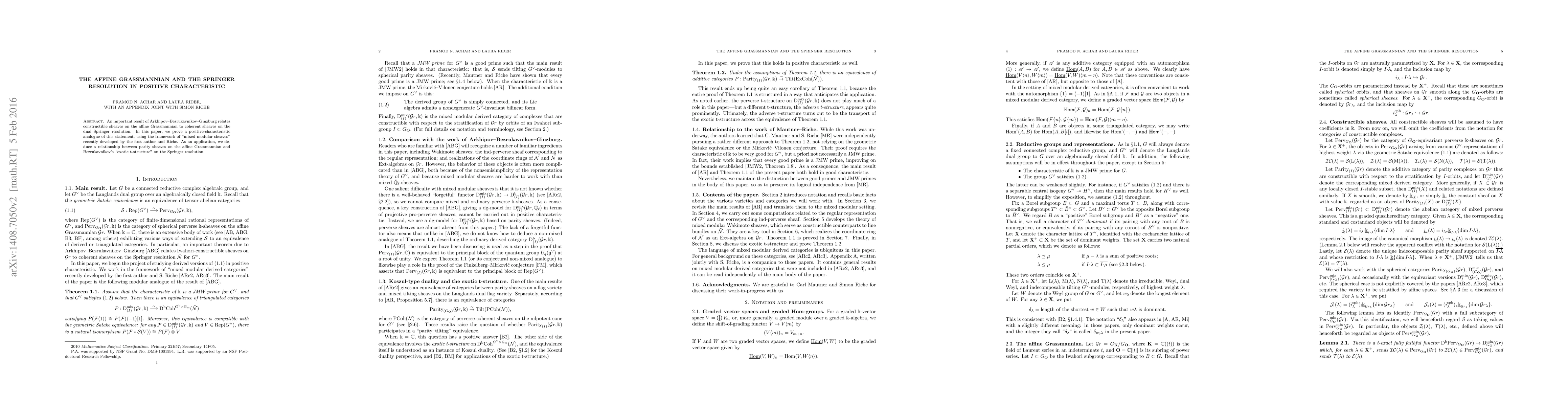 This paper establishes a positive-characteristic analogue of the Arkhipov-Bezrukavnikov-Ginzburg result, linking constructible sheaves on the affine Grassmannian to coherent sheaves on the dual Springer resolution via "mixed modular sheaves." It also reveals a connection between parity sheaves on the affine Grassmannian and Bezrukavnikov's exotic t-structure on the Springer resolution.