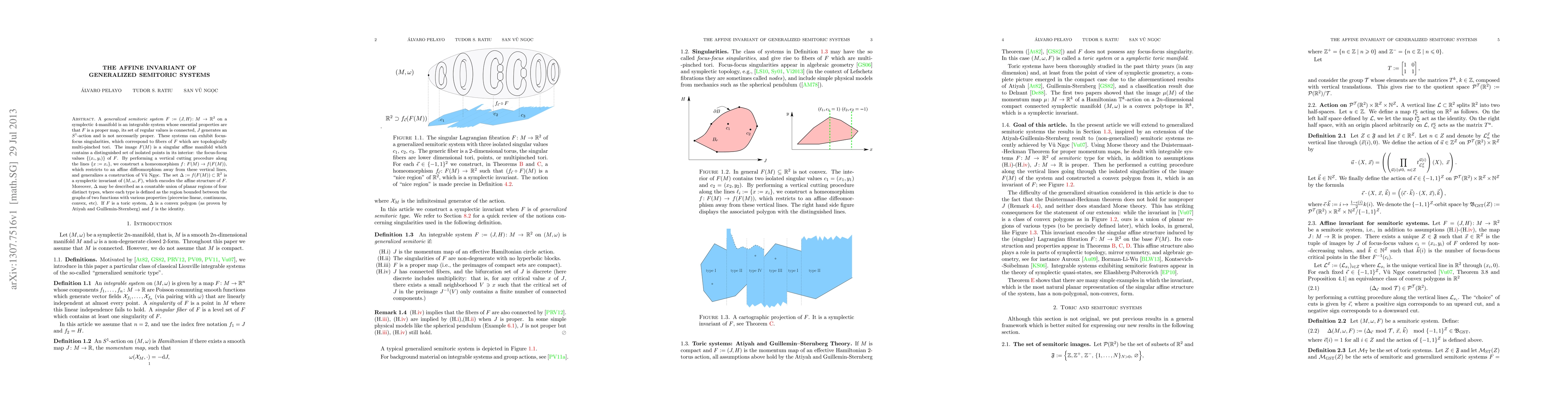 A generalized semitoric system F:=(J,H): M --> R^2 on a symplectic 4-manifold is an integrable system whose essential properties are that F is a proper map, its set of regular values is connected, J generates an S^1-action and is not necessarily proper. These systems can exhibit focus-focus singularities, which correspond to fibers of F which are topologically multipinched tori. The image F(M) is a singular affine manifold which contains a distinguished set of isolated points in its interior: the focus-focus values {(x_i,y_i)} of F. By performing a vertical cutting procedure along the lines {x:=x_i}, we construct a homeomorphism f : F(M) --> f(F(M)), which restricts to an affine diffeomorphism away from these vertical lines, and generalizes a construction of Vu Ngoc. The set \Delta:=f(F(M)) in R^2 is a symplectic invariant of (M,\omega,F), which encodes the affine structure of F. Moreover, \Delta may be described as a countable union of planar regions of four distinct types, where each type is defined as the region bounded between the graphs of two functions with various properties (piecewise linear, continuous, convex, etc). If F is a toric system, \Delta is a convex polygon (as proven by Atiyah and Guillemin-Sternberg) and f is the identity.