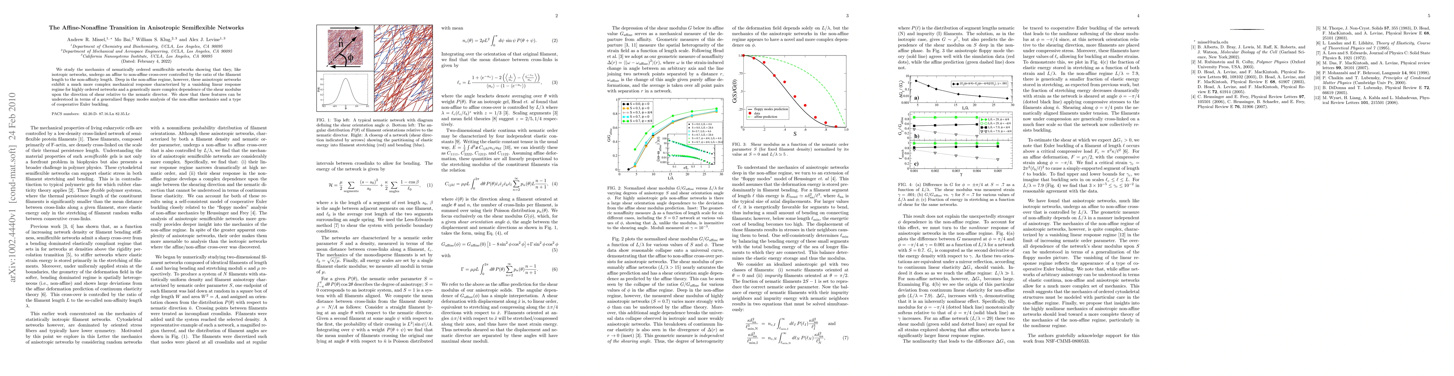 This paper investigates the mechanics of anisotropic semiflexible networks, revealing an affine-to-non-affine transition influenced by the filament length to non-affinity length ratio. In the non-affine regime, these networks display a vanishing linear response and complex shear modulus dependence, explained through a generalized floppy modes analysis and cooperative Euler buckling.
