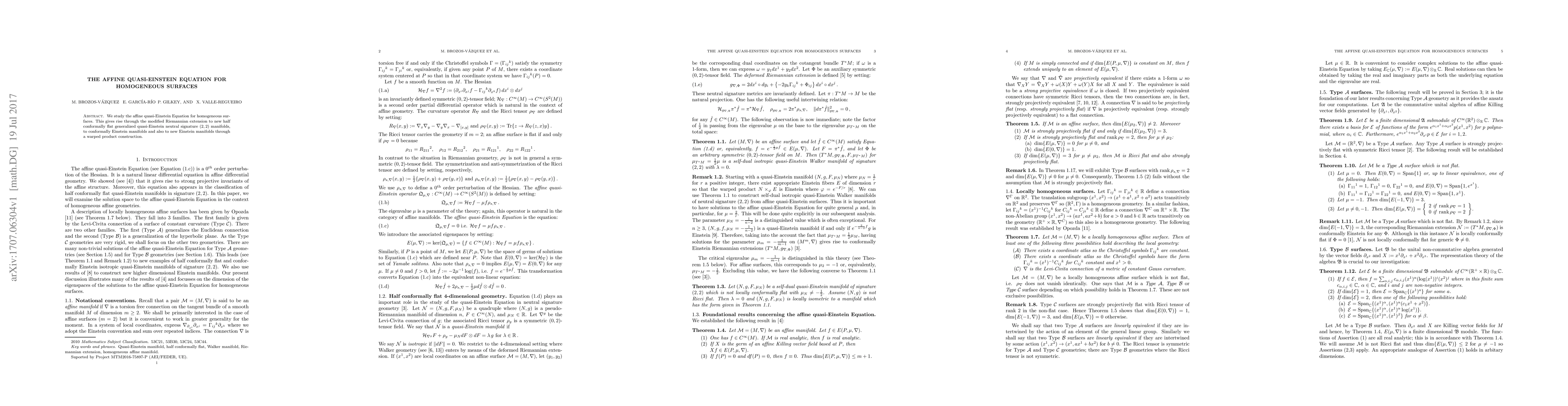 We study the affine quasi-Einstein Equation for homogeneous surfaces. This gives rise through the modified Riemannian extension to new half conformally flat generalized quasi-Einstein neutral signature $(2,2)$ manifolds, to conformally Einstein manifolds and also to new Einstein manifolds through a warped product construction.