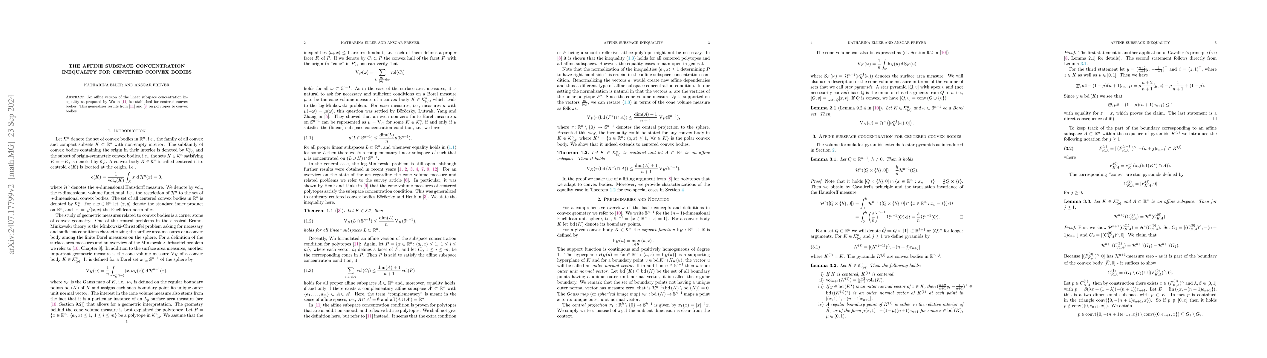 The paper introduces an affine subspace concentration inequality for centered convex bodies, providing a lifting argument adapted from polytopes to general convex bodies.