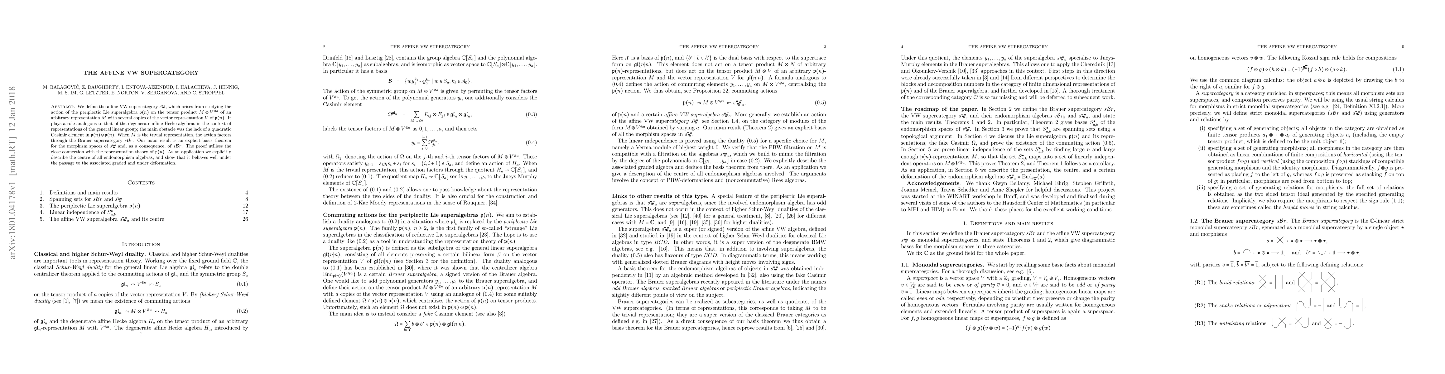 We define the affine VW supercategory $\mathit{s}\hspace{-0.7mm}\bigvee\mkern-15mu\bigvee$, which arises from studying the action of the periplectic Lie superalgebra $\mathfrak{p}(n)$ on the tensor product $M\otimes V^{\otimes a}$ of an arbitrary representation $M$ with several copies of the vector representation $V$ of $\mathfrak{p}(n)$. It plays a role analogous to that of the degenerate affine Hecke algebras in the context of representations of the general linear group; the main obstacle was the lack of a quadratic Casimir element in $\mathfrak{p}(n)\otimes \mathfrak{p}(n)$. When $M$ is the trivial representation, the action factors through the Brauer supercategory $\mathit{s}\mathcal{B}\mathit{r}$. Our main result is an explicit basis theorem for the morphism spaces of $\mathit{s}\hspace{-0.7mm}\bigvee\mkern-15mu\bigvee$ and, as a consequence, of $\mathit{s}\mathcal{B}\mathit{r}$. The proof utilises the close connection with the representation theory of $\mathfrak{p}(n)$. As an application we explicitly describe the centre of all endomorphism algebras, and show that it behaves well under the passage to the associated graded and under deformation.