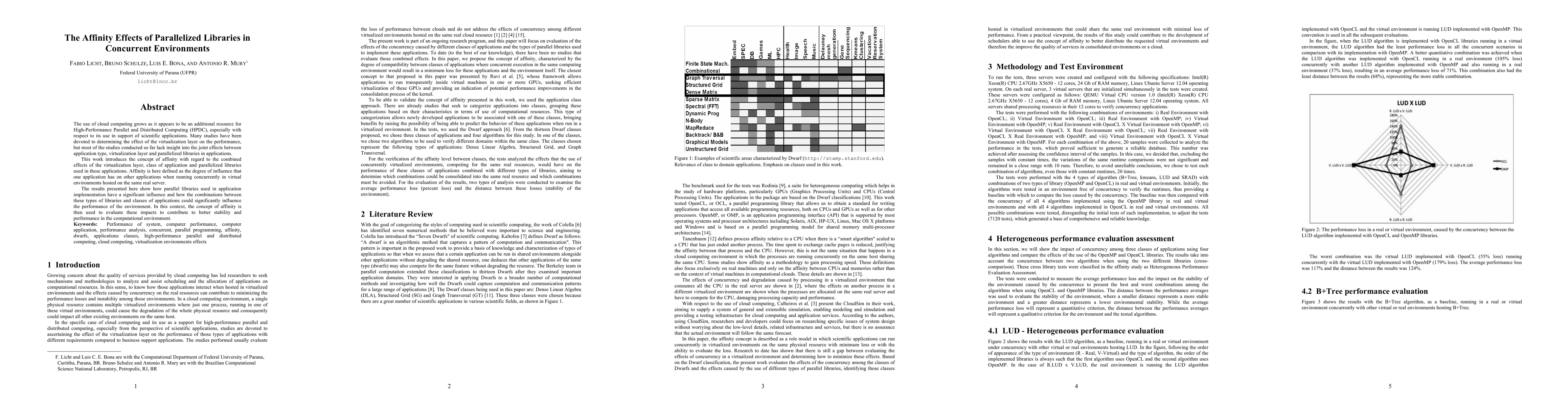 The use of cloud computing grows as it appears to be an additional resource for High-Performance Parallel and Distributed Computing (HPDC), especially with respect to its use in support of scientific applications. Many studies have been devoted to determining the effect of the virtualization layer on the performance, but most of the studies conducted so far lack insight into the joint effects between application type, virtualization layer and parallelized libraries in applications. This work introduces the concept of affinity with regard to the combined effects of the virtualization layer, class of application and parallelized libraries used in these applications. Affinity is here defined as the degree of influence that one application has on other applications when running concurrently in virtual environments hosted on the same real server. The results presented here show how parallel libraries used in application implementation have a significant influence and how the combinations between these types of libraries and classes of applications could significantly influence the performance of the environment. In this context, the concept of affinity is then used to evaluate these impacts to contribute to better stability and performance in the computational environment.