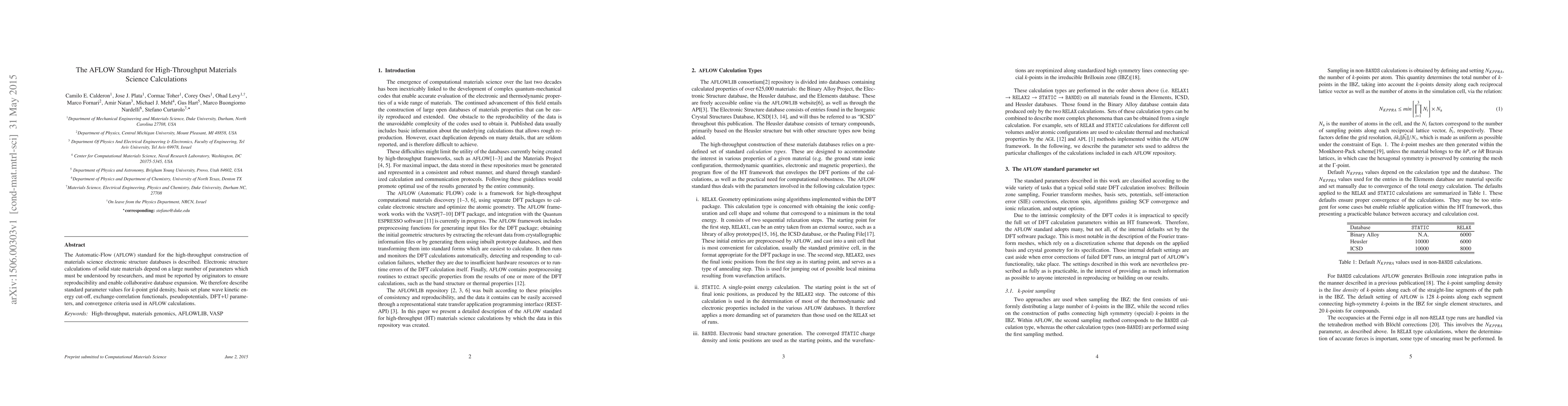 The AFLOW standard establishes a framework for high-throughput electronic structure calculations in materials science, detailing critical parameters to ensure reproducibility and facilitate collaborative database development. Key parameters include k-point grid density, plane wave kinetic energy cutoff, and pseudopotential specifications.