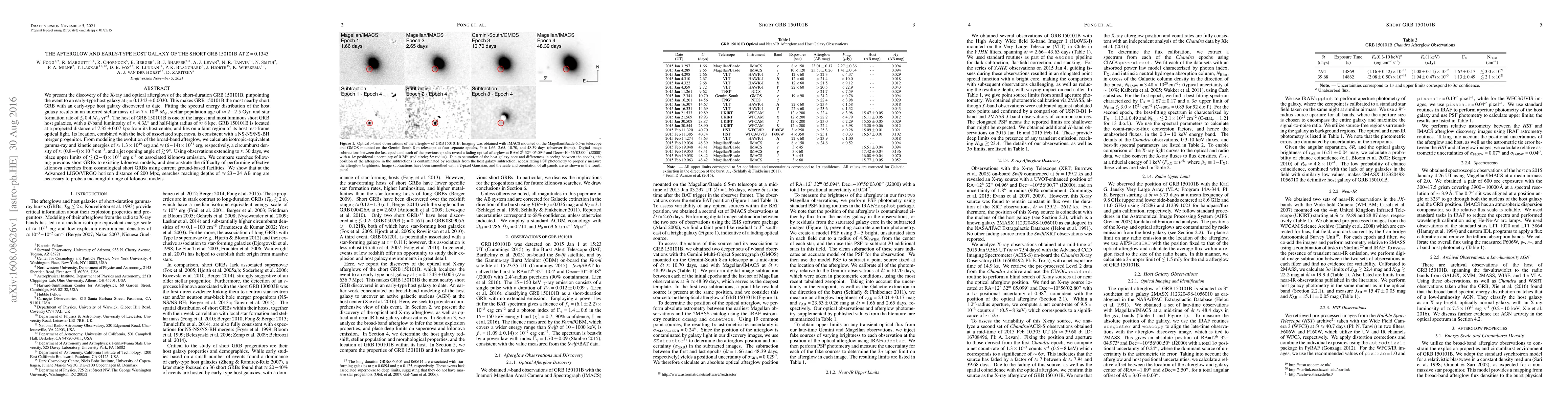 The research utilized broad-band afterglow observations and spectral energy distribution fitting to analyze the short GRB 150101B at z=0.1343, pinpointing it to an early-type host galaxy with detailed properties inferred.