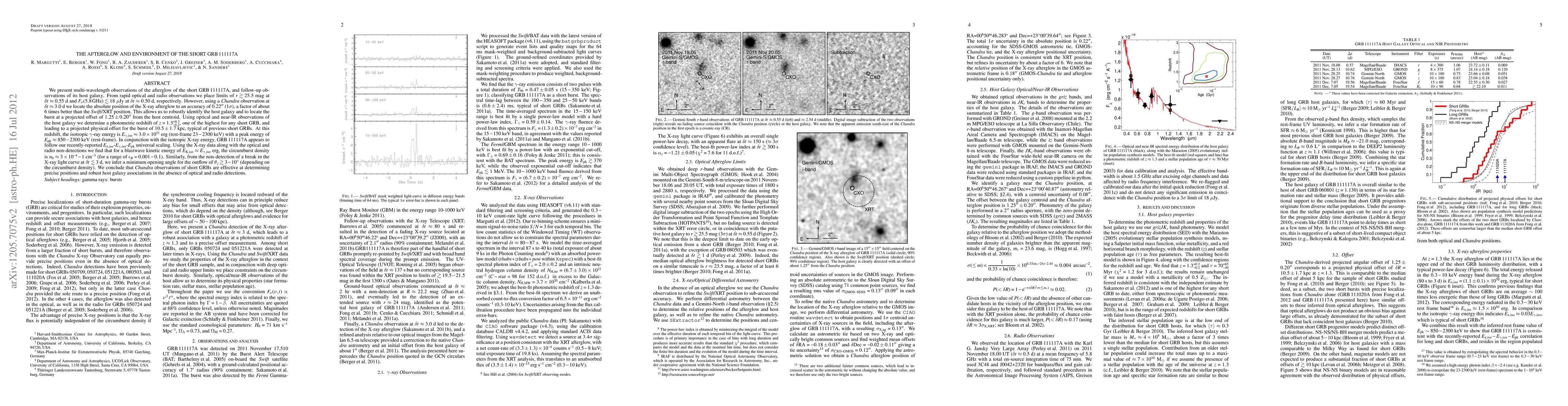 We present multi-wavelength observations of the afterglow of the short GRB111117A, and follow-up observations of its host galaxy. From rapid optical and radio observations we place limits of r \gtrsim 25.5 mag at \deltat \approx 0.55 d and F_nu(5.8 GHz) < 18 \muJy at \deltat \approx 0.50 d, respectively. However, using a Chandra observation at t~3.0 d we locate the absolute position of the X-ray afterglow to an accuracy of 0.22" (1 sigma), a factor of about 6 times better than the Swift-XRT position. This allows us to robustly identify the host galaxy and to locate the burst at a projected offset of 1.25 +/- 0.20" from the host centroid. Using optical and near-IR observations of the host galaxy we determine a photometric redshift of z=1.3 (+0.3,-0.2), one of the highest for any short GRB, and leading to a projected physical offset for the burst of 10.5 +/- 1.7 kpc, typical of previous short GRBs. At this redshift, the isotropic gamma-ray energy is E_{gamma,iso} \approx 3\times10^51 erg (rest-frame 23-2300 keV) with a peak energy of E_{pk} \approx 850-2300 keV (rest-frame). In conjunction with the isotropic X-ray energy, GRB111117A appears to follow our recently-reported E_x,iso-E_gamma,iso-E_pk universal scaling. Using the X-ray data along with the optical and radio non-detections we find that for a blastwave kinetic energy of E_{K,iso} \approx E_{gamma,iso}, the circumburst density is n_0 \sim 3x10^(-4)-1 cm^-3 (for a range of epsilon_B=0.001-0.1). Similarly, from the non-detection of a break in the X-ray light curve at t<3 d, we infer a minimum opening angle for the outflow of theta_j> 3-10 degrees (depending on the circumburst density). We conclude that Chandra observations of short GRBs are effective at determining precise positions and robust host galaxy associations in the absence of optical and radio detections.