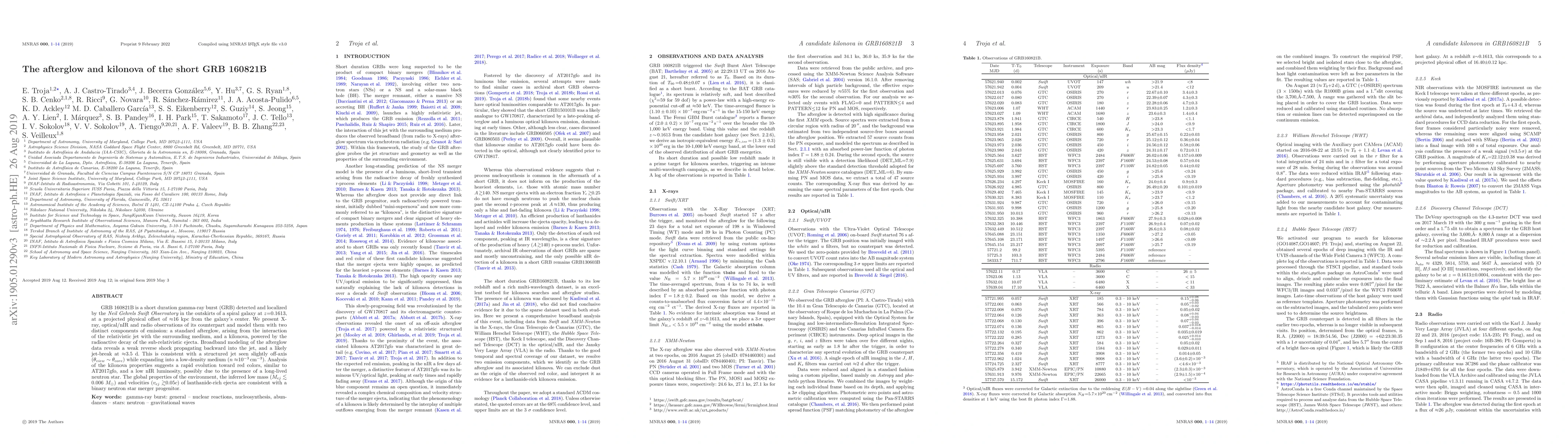 This paper analyzes the afterglow and kilonova of the short GRB 160821B, revealing a structured jet and a kilonova powered by radioactive decay from a binary neutron star merger. The observations suggest a low-density environment and a neutron star remnant, with ejecta consistent with low mass and high velocity.