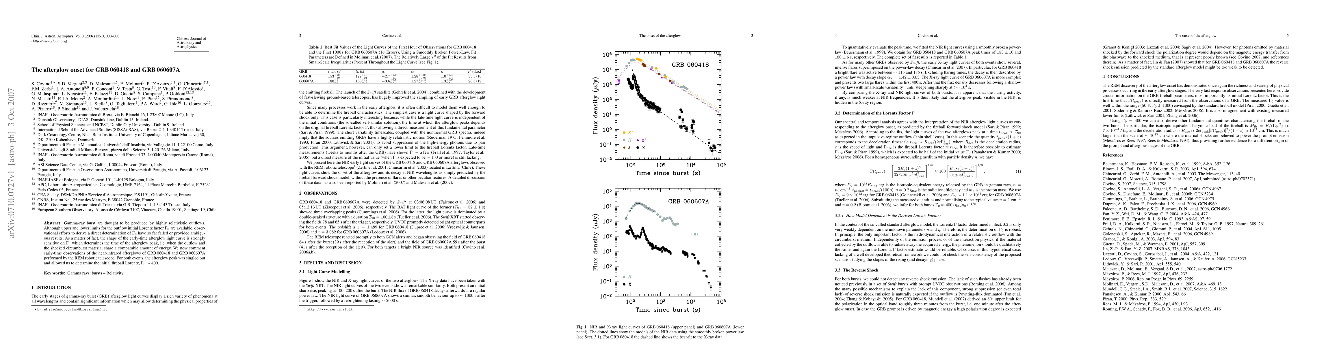 This paper reports on early-time observations of the near-infrared afterglows of GRB 060418 and GRB 060607A using the REM robotic telescope, determining the initial fireball Lorentz factor, $\Gamma_0$, to be approximately 400 for both events. The findings provide a clearer understanding of the relativistic outflows that produce gamma-ray bursts.