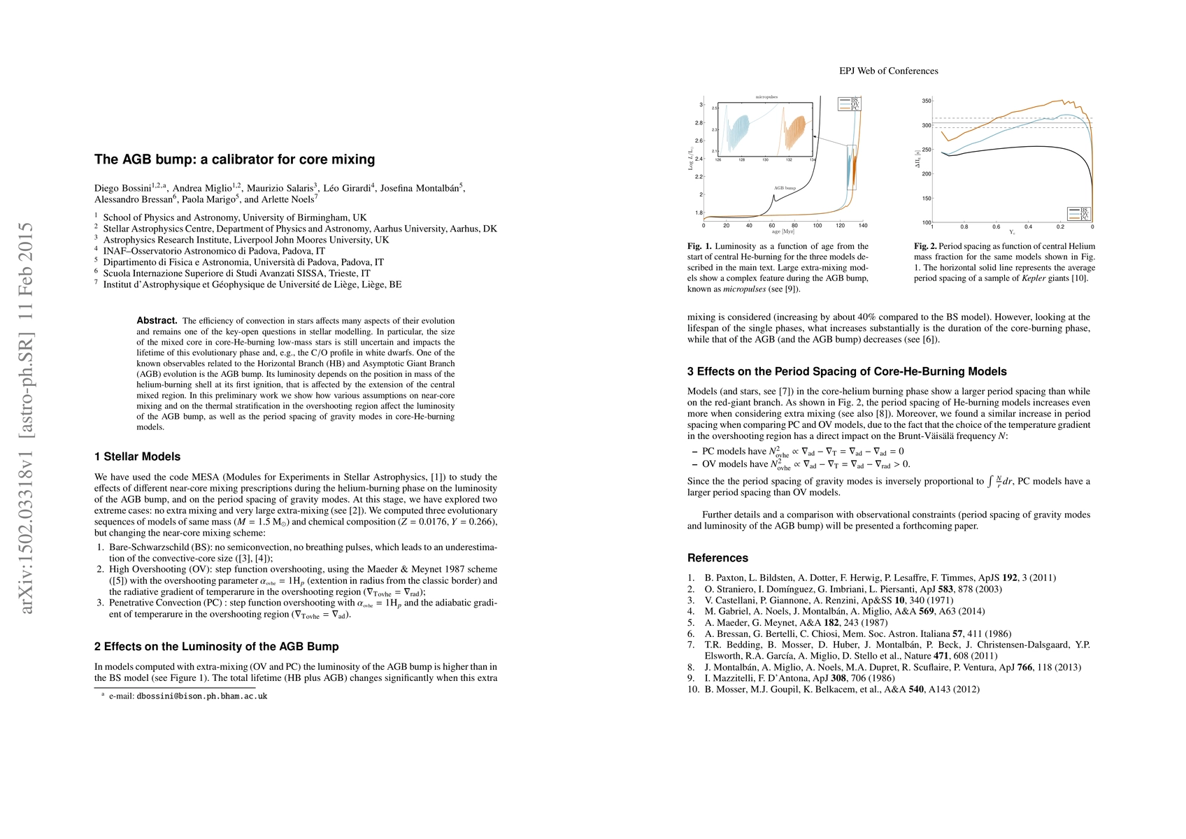 The efficiency of convection in stars affects many aspects of their evolution and remains one of the key-open questions in stellar modelling. In particular, the size of the mixed core in core-He-burning low-mass stars is still uncertain and impacts the lifetime of this evolutionary phase and, e.g., the C/O profile in white dwarfs. One of the known observables related to the Horizontal Branch (HB) and Asymptotic Giant Branch (AGB) evolution is the AGB bump. Its luminosity depends on the position in mass of the helium-burning shell at its first ignition, that is affected by the extension of the central mixed region. In this preliminary work we show how various assumptions on near-core mixing and on the thermal stratification in the overshooting region affect the luminosity of the AGB bump, as well as the period spacing of gravity modes in core-He-burning models.
