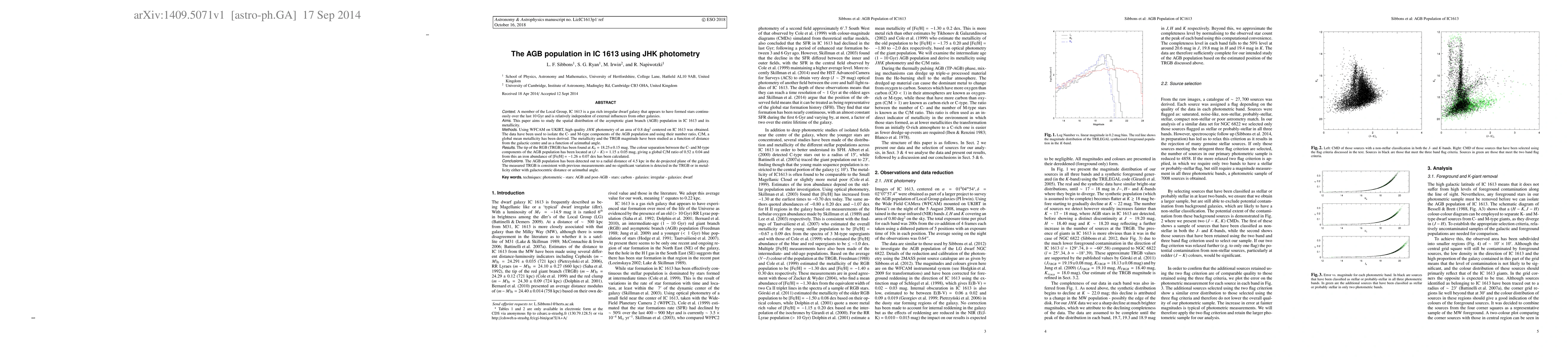 This paper investigates the spatial distribution and metallicity of the asymptotic giant branch (AGB) population in IC 1613 using JHK photometry. The study finds a global mean metallicity of [Fe/H] = -1.26 +/- 0.07 dex, with no significant variation in metallicity or the tip of the RGB (TRGB) magnitude across the galaxy.