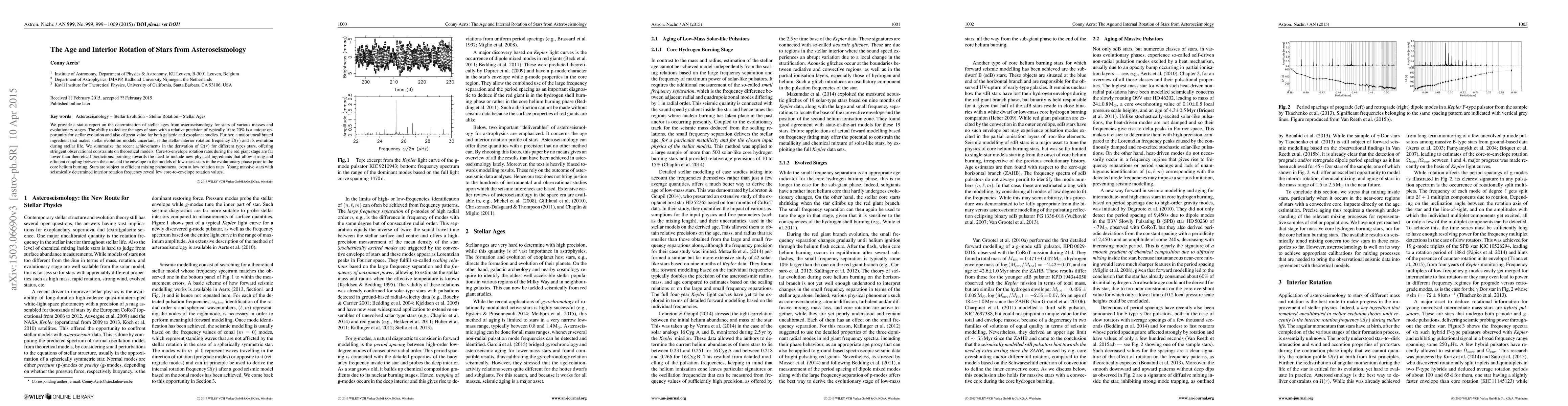 This paper reviews the progress in determining stellar ages and interior rotation rates through asteroseismology, achieving a relative precision of 10-20%. It highlights the need for new physical models to better align core-to-envelope rotation rates in low-mass stars with observations, especially during the red giant stage.