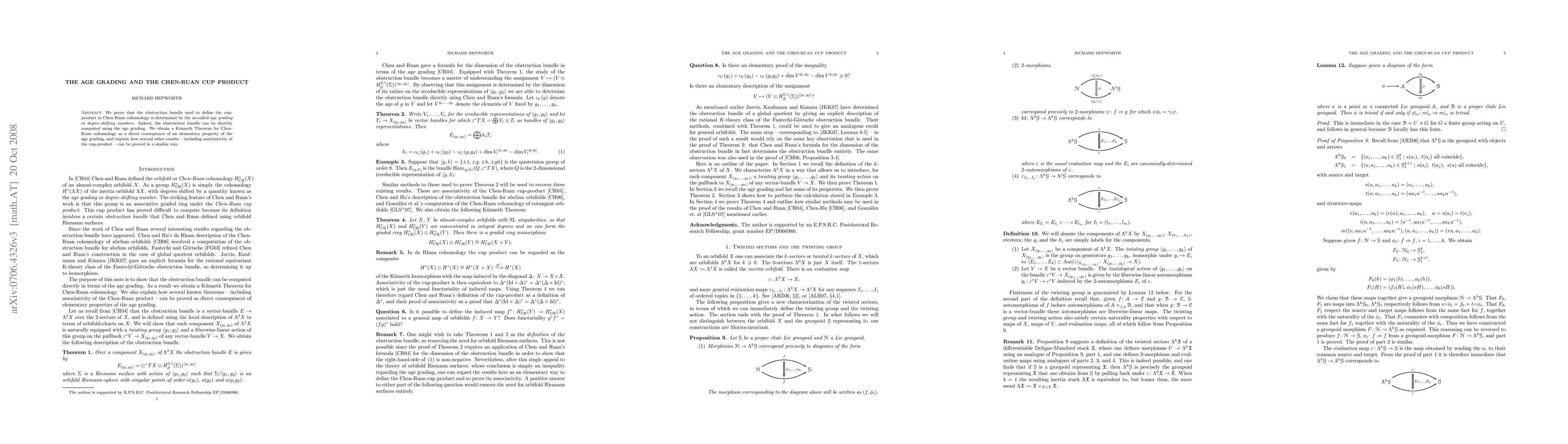 We prove that the obstruction bundle used to define the cup-product in Chen-Ruan cohomology is determined by the so-called `age grading' or `degree-shifting numbers'. Indeed, the obstruction bundle can be directly computed using the age grading. We obtain a Kunneth Theorem for Chen-Ruan cohomology as a direct consequence of an elementary property of the age grading, and explain how several other results - including associativity of the cup-product - can be proved in a similar way.