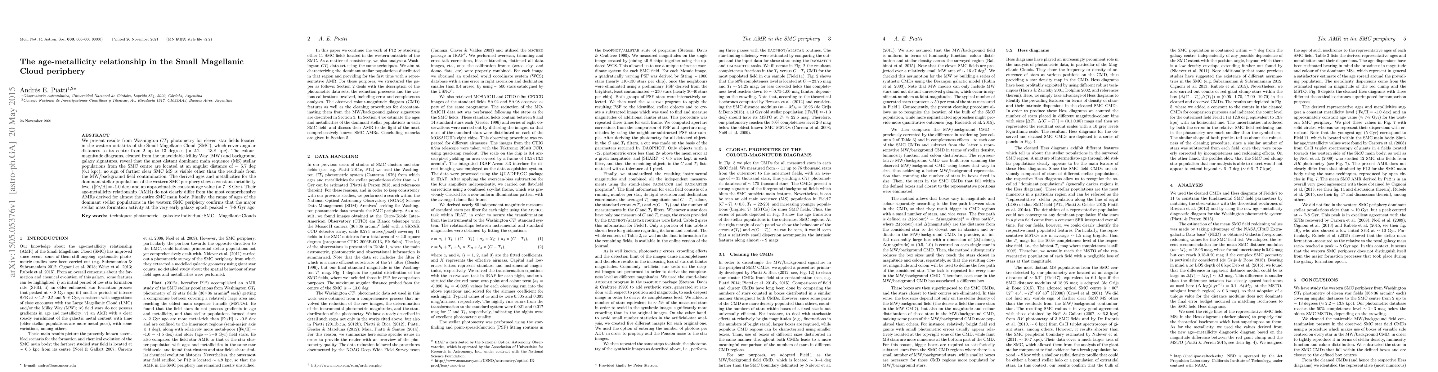 This study uses Washington CT1 photometry to analyze the age-metallicity relationship in the western periphery of the Small Magellanic Cloud (SMC), revealing constant metallicity and age (~7-8 Gyr) for the dominant stellar populations, consistent with the SMC's main body and indicating a peak in major stellar formation activity around this time.
