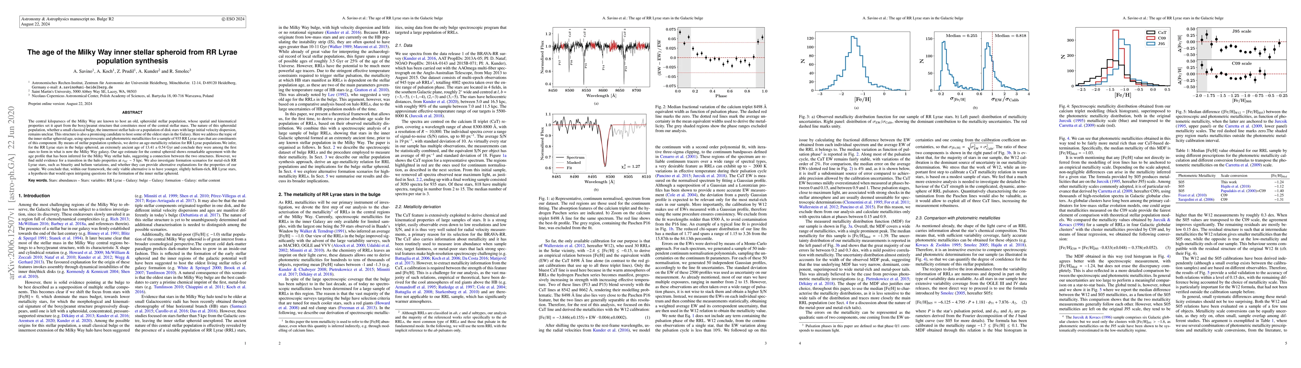This study uses RR Lyrae stars to determine the age of the Milky Way's inner stellar spheroid, finding an ancient age of $13.41 \pm 0.54$ Gyr, suggesting these stars were among the first to form in the galaxy. The age estimate aligns with the Milky Way's stellar halo, indicating a possible connection between the two structures.
