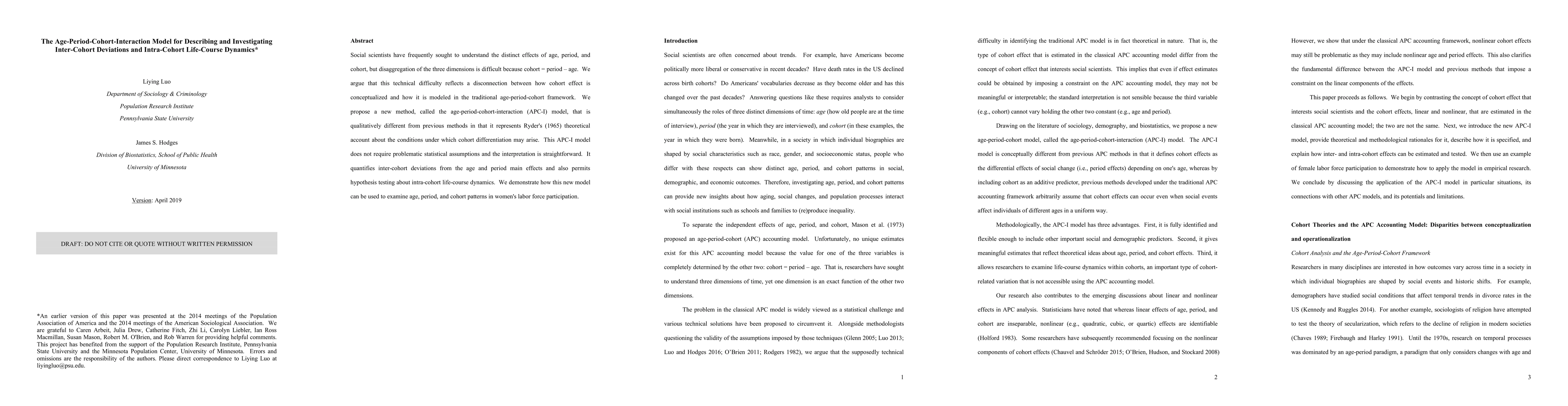 This paper introduces the age-period-cohort-interaction (APC-I) model to better disentangle age, period, and cohort effects, offering a straightforward interpretation and hypothesis testing for intra-cohort dynamics, demonstrated through women's labor force participation.