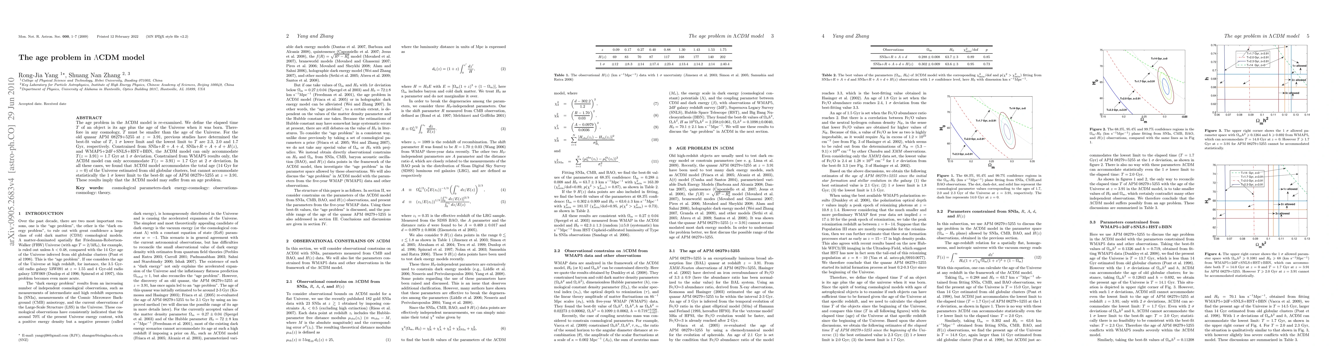 The age problem in the $\Lambda$CDM model is re-examined. We define the elapsed time $T$ of an object is its age plus the age of the Universe when it was born. Therefore in any cosmology, $T$ must be smaller than the age of the Universe. For the old quasar APM 08279+5255 at $z=3.91$, previous studies have determined the best-fit value of $T$, 1 $\sigma$ lower limit and the lowest limit to $T$ are 2.3, 2.0 and 1.7 Gyr, respectively. Constrained from SNIa$+R+A+d$, SNIa$+R+A+d+H(z)$, and WMAP5+2dF+SNLS+HST+BBN, the $\Lambda$CDM model can only accommodate $T(z=3.91)=1.7$ Gyr at 1 $\sigma$ deviation. Constrained from WMAP5 results only, the $\Lambda$CDM model can only accommodate $T(z=3.91)=1.7$ Gyr at 2 $\sigma$ deviation. In all these cases, we found that $\Lambda$CDM model accommodates the total age (14 Gyr for $z=0$) of the Universe estimated from old globular clusters, but cannot accommodate statistically the 1 $\sigma$ lower limit to the best-fit age of APM~08279+5255 at $z=3.91$. These results imply that the $\Lambda$CDM model may suffer from an age problem.