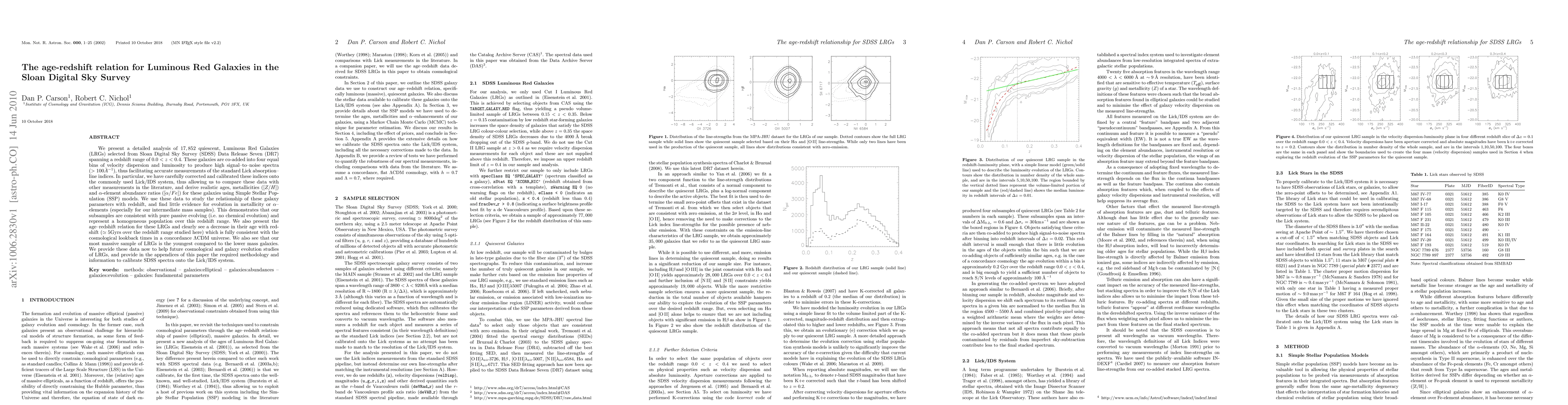 This paper analyzes 17,852 Luminous Red Galaxies from SDSS DR7, finding little evolution in metallicity or alpha-elements over a redshift range of 0.0 < z < 0.4. The study reveals a consistent age-redshift relation, showing younger galaxies at higher redshifts, supporting passive evolution models.