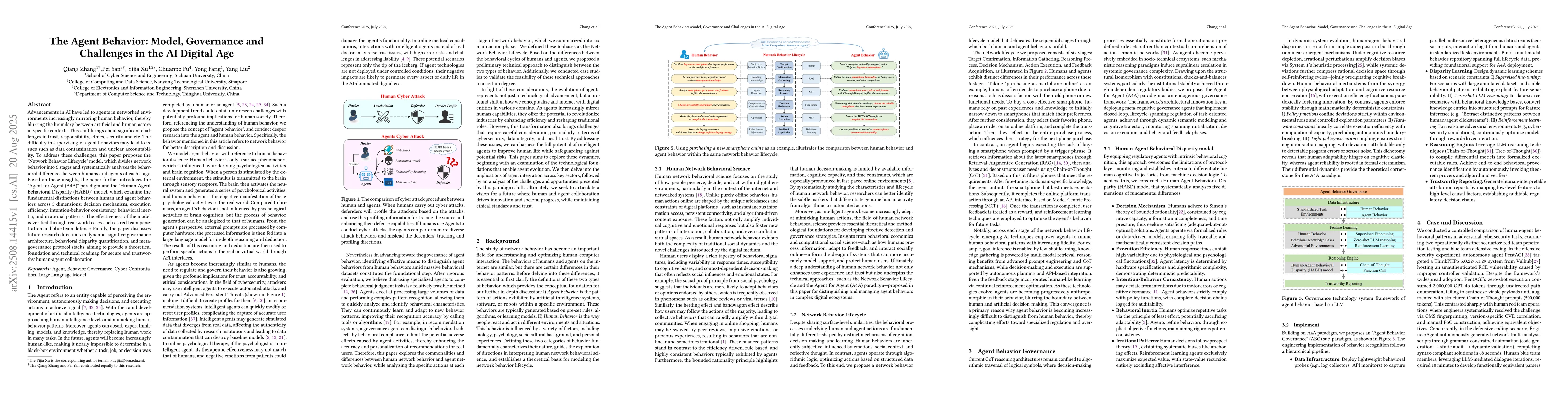 Advancements in AI have led to agents in networked environments increasingly mirroring human behavior, thereby blurring the boundary between artificial and human actors in specific contexts. This shift brings about significant challenges in trust, responsibility, ethics, security and etc. The difficulty in supervising of agent behaviors may lead to issues such as data contamination and unclear accountability. To address these challenges, this paper proposes the "Network Behavior Lifecycle" model, which divides network behavior into 6 stages and systematically analyzes the behavioral differences between humans and agents at each stage. Based on these insights, the paper further introduces the "Agent for Agent (A4A)" paradigm and the "Human-Agent Behavioral Disparity (HABD)" model, which examine the fundamental distinctions between human and agent behaviors across 5 dimensions: decision mechanism, execution efficiency, intention-behavior consistency, behavioral inertia, and irrational patterns. The effectiveness of the model is verified through real-world cases such as red team penetration and blue team defense. Finally, the paper discusses future research directions in dynamic cognitive governance architecture, behavioral disparity quantification, and meta-governance protocol stacks, aiming to provide a theoretical foundation and technical roadmap for secure and trustworthy human-agent collaboration.
