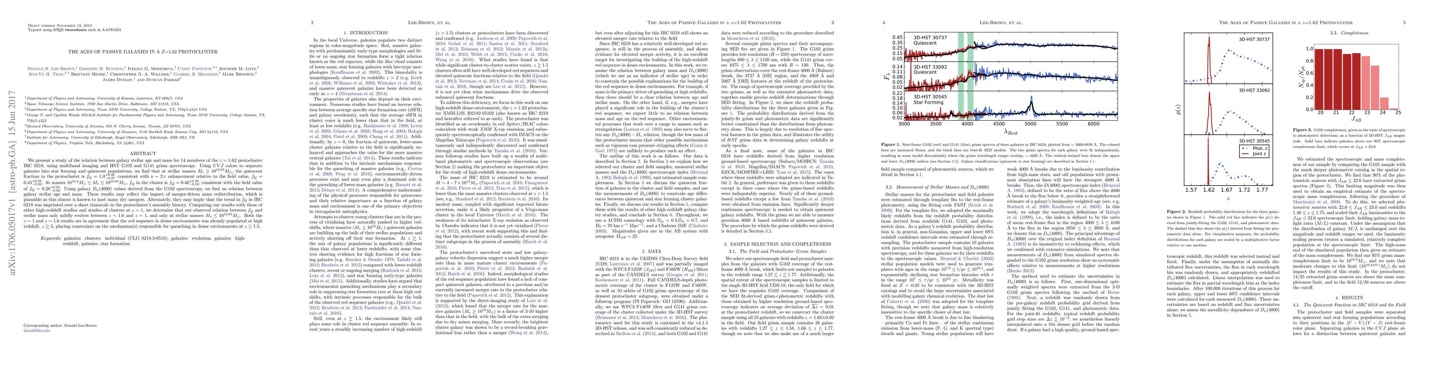 We present a study of the relation between galaxy stellar age and mass for 14 members of the $z=1.62$ protocluster IRC 0218, using multiband imaging and HST G102 and G141 grism spectroscopy. Using $UVJ$ colors to separate galaxies into star forming and quiescent populations, we find that at stellar masses $M_* \geq 10^{10.85} M_{\odot}$, the quiescent fraction in the protocluster is $f_Q=1.0^{+0.00}_{-0.37}$, consistent with a $\sim 2\times $ enhancement relative to the field value, $f_Q=0.45^{+0.03}_{-0.03}$. At masses $10^{10.2} M_{\odot} \leq M_* \leq 10^{10.85} M_{\odot}$, $f_Q$ in the cluster is $f_Q=0.40^{+0.20}_{-0.18}$, consistent with the field value of $f_Q=0.28^{+0.02}_{-0.02}$. Using galaxy $D_{n}(4000)$ values derived from the G102 spectroscopy, we find no relation between galaxy stellar age and mass. These results may reflect the impact of merger-driven mass redistribution, which is plausible as this cluster is known to host many dry mergers. Alternately, they may imply that the trend in $f_Q$ in IRC 0218 was imprinted over a short timescale in the protocluster's assembly history. Comparing our results with those of other high-redshift studies and studies of clusters at $z\sim 1$, we determine that our observed relation between $f_Q$ and stellar mass only mildly evolves between $z\sim 1.6$ and $z \sim 1$, and only at stellar masses $M_* \leq 10^{10.85} M_{\odot}$. Both the $z\sim 1$ and $z\sim 1.6$ results are in agreement that the red sequence in dense environments was already populated at high redshift, $z \ge 3$, placing constraints on the mechanism(s) responsible for quenching in dense environments at $z\ge 1.5$