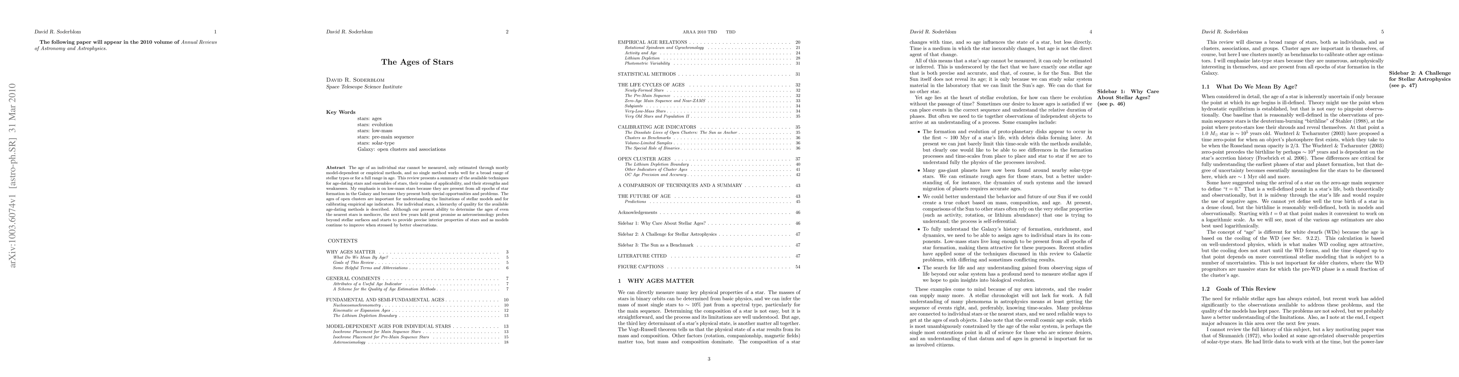 A review of methods for age-dating stars reveals no single technique works well across stellar types and ages, with low-mass stars presenting both opportunities and challenges. New technologies like asteroseismology hold promise for precise interior properties and better age estimates in the near future.