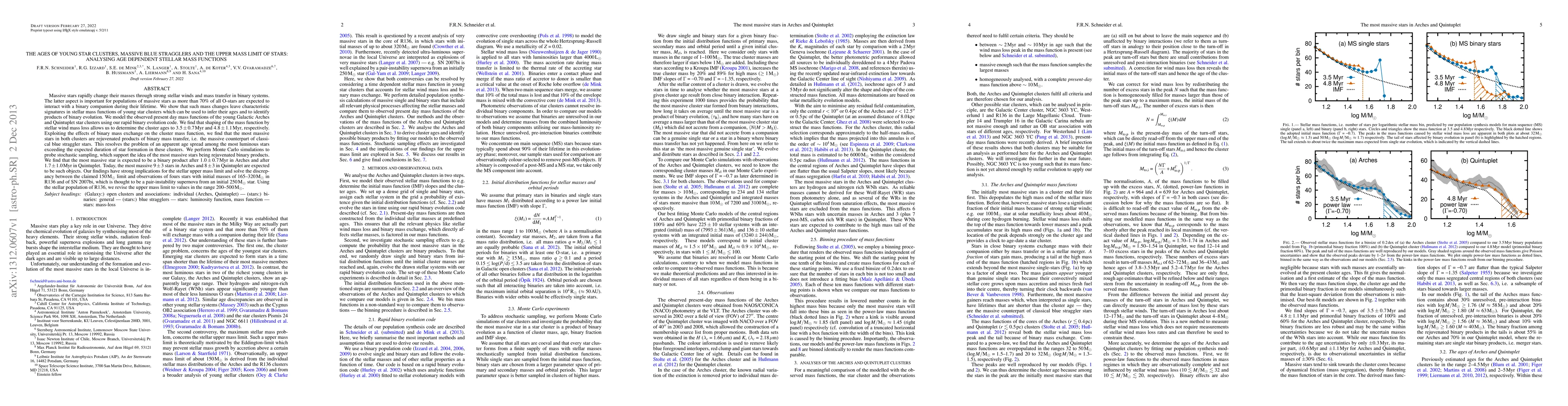This paper analyzes the ages of young star clusters and identifies massive blue stragglers through their mass functions, revealing that the most massive stars are rejuvenated binary products. The study revises the upper stellar mass limit to 200-500 solar masses, resolving discrepancies with previous claims and observations.