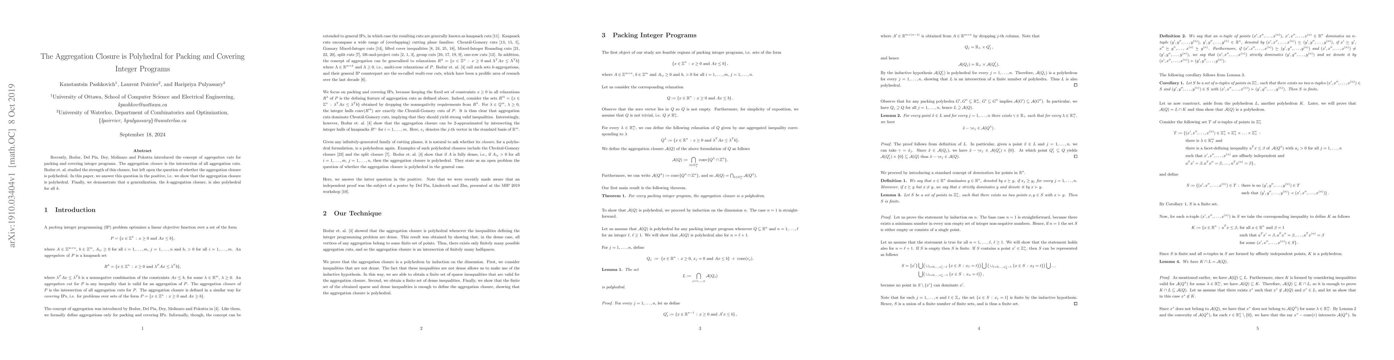 The paper introduces a new concept of aggregation cuts for packing and covering integer programs, studying the strength of the aggregation closure, and proving it is polyhedral.