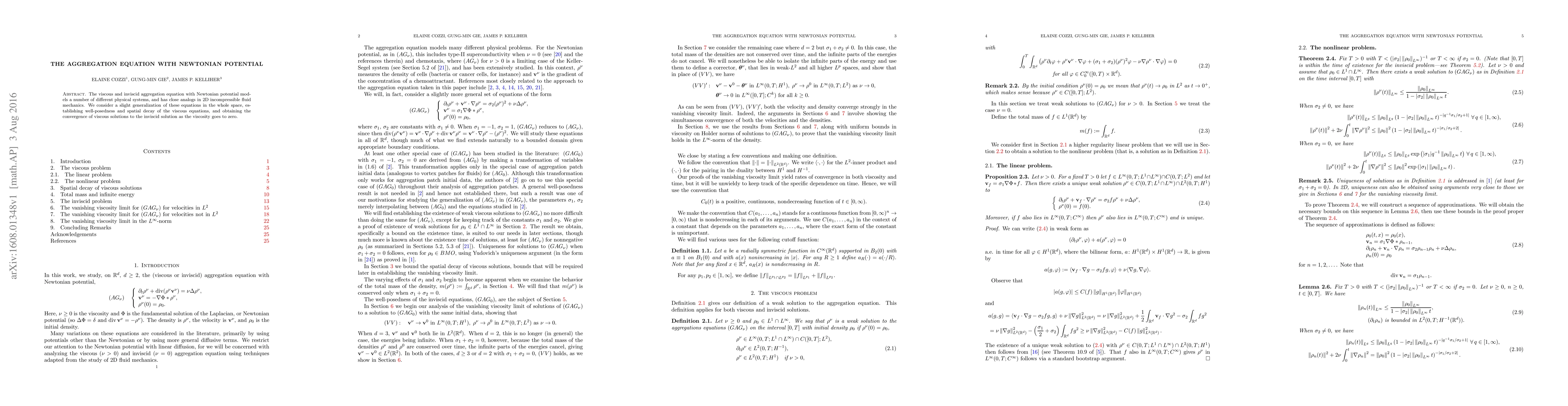 The viscous and inviscid aggregation equation with Newtonian potential models a number of different physical systems, and has close analogs in 2D incompressible fluid mechanics. We consider a slight generalization of these equations in the whole space, establishing well-posedness and spatial decay of the viscous equations, and obtaining the convergence of viscous solutions to the inviscid solution as the viscosity goes to zero.