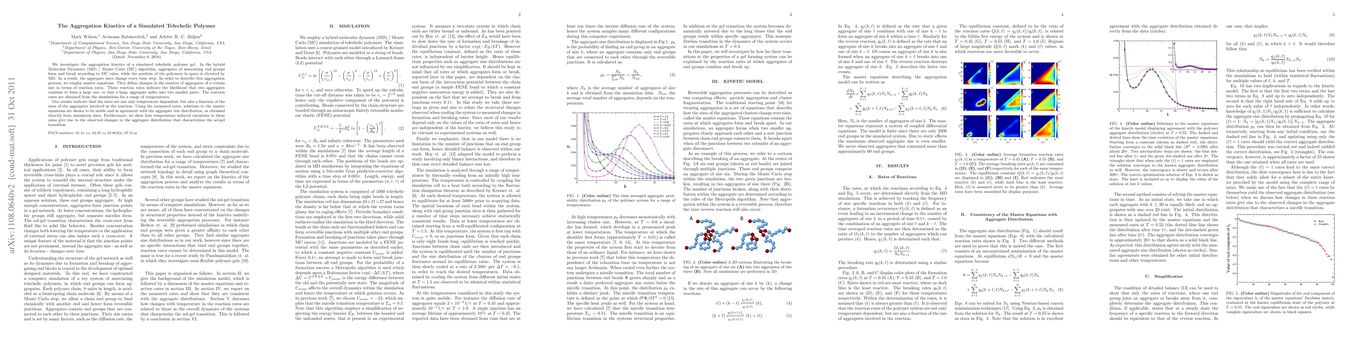 We investigate the aggregation kinetics of a simulated telechelic polymer gel. In the hybrid Molecular Dynamics (MD) / Monte Carlo (MC) algorithm, aggregates of associating end groups form and break according to MC rules, while the position of the polymers in space is dictated by MD. As a result, the aggregate sizes change every time step. In order to describe this aggregation process, we employ master equations. They define changes in the number of aggregates of a certain size in terms of reaction rates. These reaction rates indicate the likelihood that two aggregates combine to form a large one, or that a large aggregate splits into two smaller parts. The reaction rates are obtained from the simulations for a range of temperatures. Our results indicate that the rates are not only temperature dependent, but also a function of the sizes of the aggregates involved in the reaction. Using the measured rates, solutions to the master equations are shown to be stable and in agreement with the aggregate size distribution, as obtained directly from simulation data. Furthermore, we show how temperature induced variations in these rates give rise to the observed changes in the aggregate distribution that characterizes the sol-gel transition.