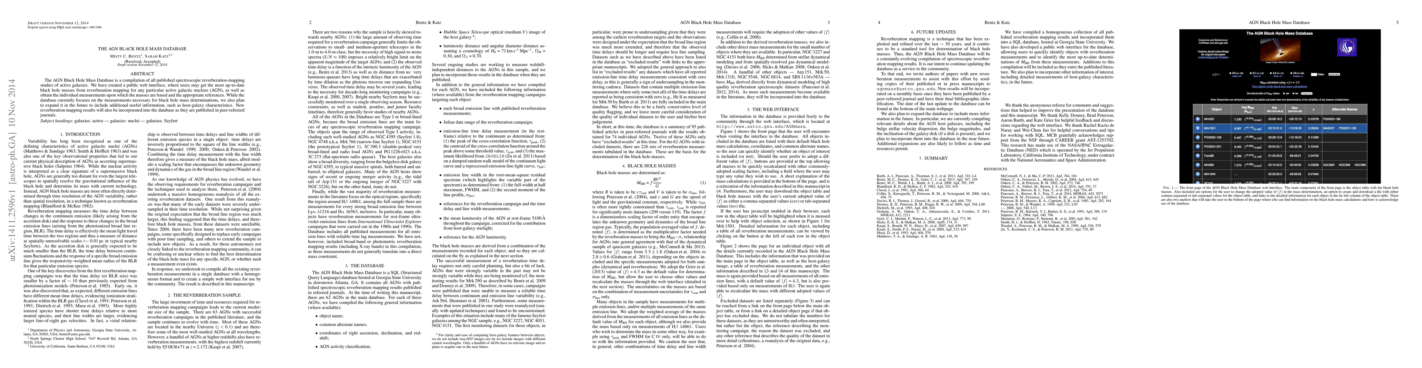 The AGN Black Hole Mass Database is a compilation of all published spectroscopic reverberation-mapping studies of active galaxies. We have created a public web interface, where users may get the most up-to-date black hole masses from reverberation mapping for any particular active galactic nucleus (AGN), as well as obtain the individual measurements upon which the masses are based and the appropriate references. While the database currently focuses on the measurements necessary for black hole mass determinations, we also plan to expand it in the future to include additional useful information, such as host-galaxy characteristics. New reverberation mapping results will also be incorporated into the database as they are published in peer-refereed journals.