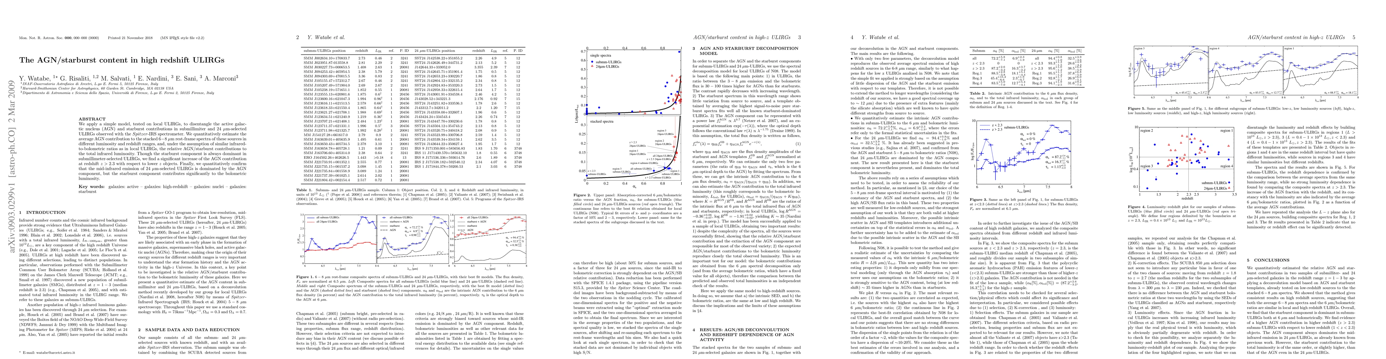 This paper uses a model to separate AGN and starburst contributions in high redshift ULIRGs, finding that while starbursts dominate in submillimeter-selected ULIRGs, AGN contributions significantly increase at redshifts above 2.3. For 24um-selected ULIRGs, AGN dominates mid-infrared emission but starbursts still contribute significantly to total infrared luminosity.
