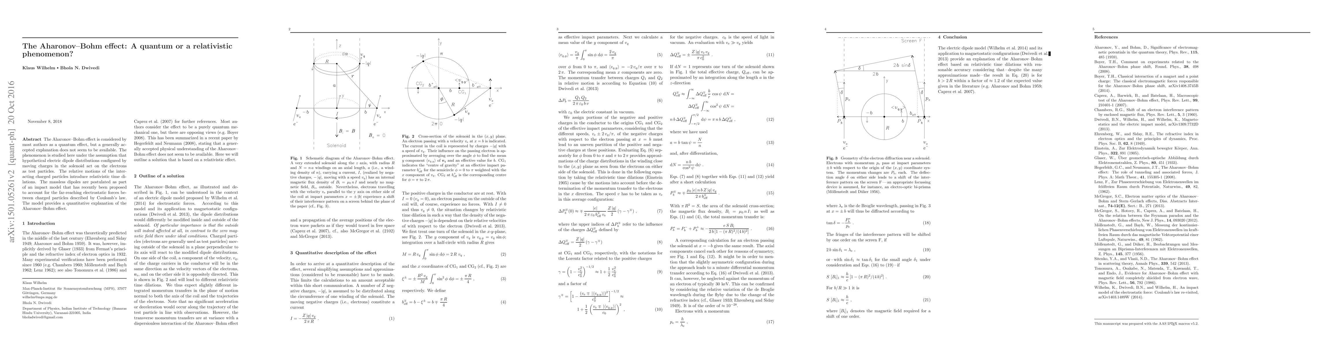 The Aharonov-Bohm effect, typically viewed as a quantum phenomenon, is reinterpreted here through a relativistic impact model involving hypothetical electric dipoles and time dilations, offering a new quantitative explanation. This approach suggests that the effect could also be understood within the framework of relativistic physics.
