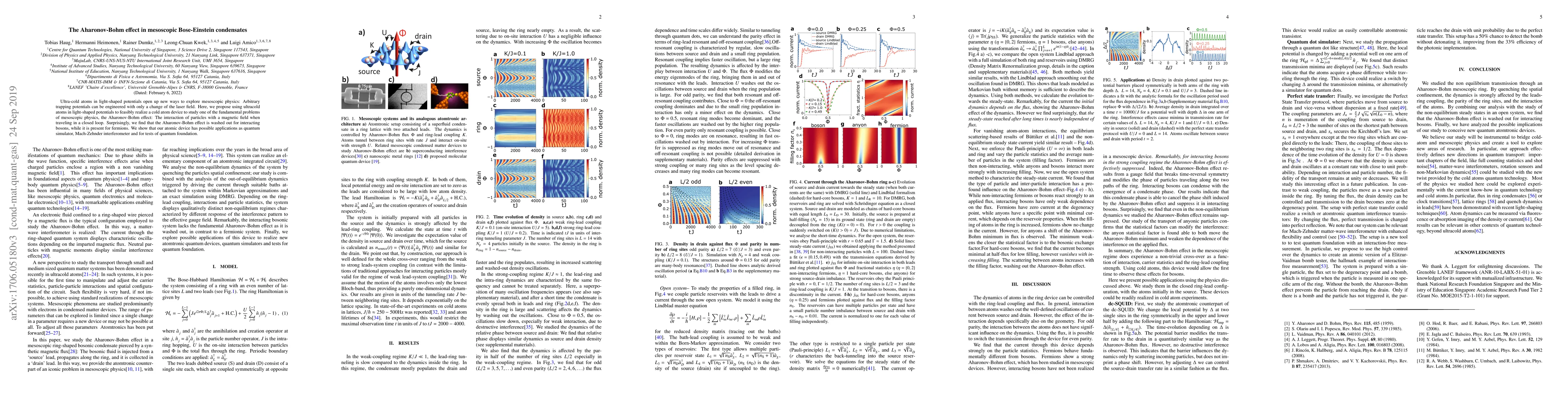 Ultra-cold atoms in light-shaped potentials open up new ways to explore mesoscopic physics: Arbitrary trapping potentials can be engineered with only a change of the laser field. Here, we propose using ultracold atoms in light-shaped potentials to feasibly realize a cold atom device to study one of the fundamental problems of mesoscopic physics, the Aharonov-Bohm effect: The interaction of particles with a magnetic field when traveling in a closed loop. Surprisingly, we find that the Aharonov-Bohm effect is washed out for interacting bosons, while it is present for fermions. We show that our atomic device has possible applications as quantum simulator, Mach-Zehnder interferometer and for tests of quantum foundation.
