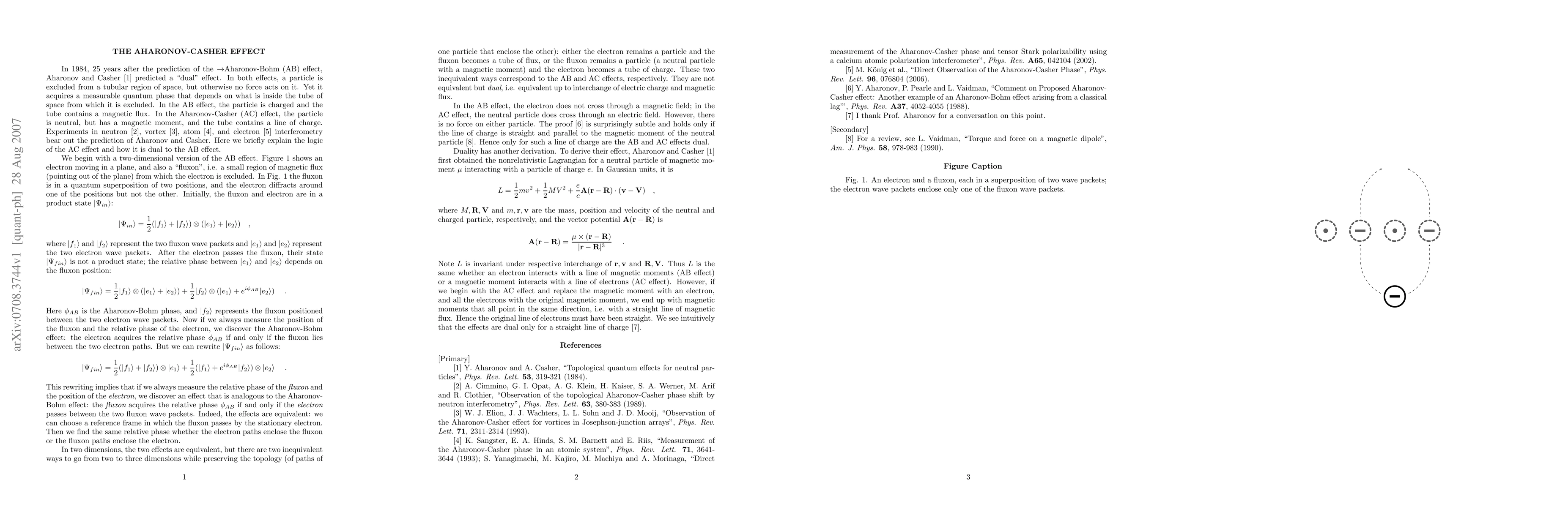 The Aharonov-Casher effect, entry in the Compendium of Quantum Physics: Concepts, Experiments, History and Philosophy, ed. F. Weinert, K. Hentschel, D. Greenberger and B. Falkenburg (Springer), to appear