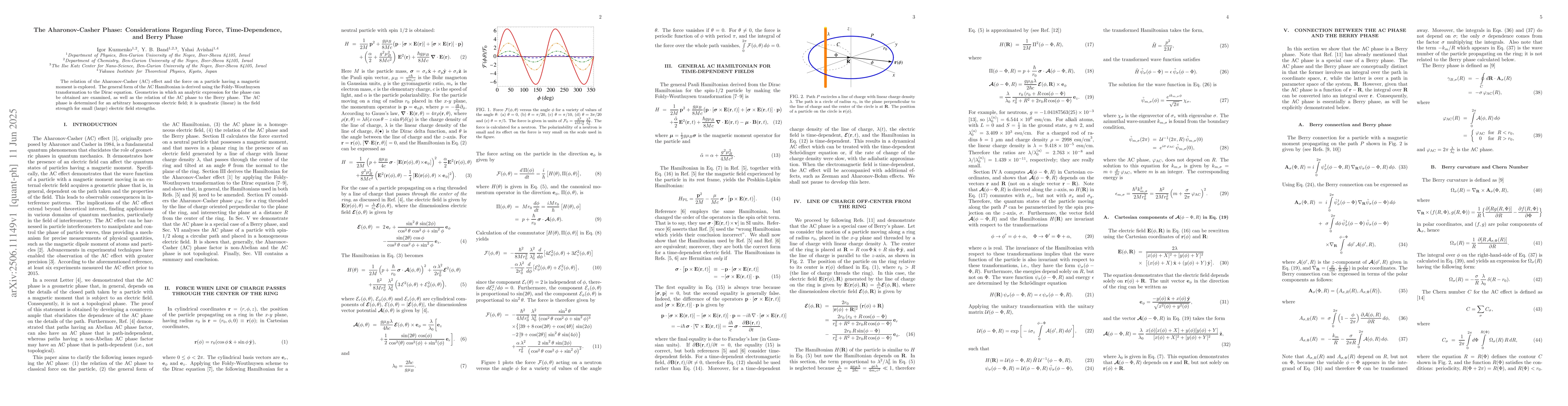 The relation of the Aharonov-Casher (AC) effect and the force on a particle having a magnetic moment is explored. The general form of the AC Hamiltonian is derived using the Foldy-Wouthuysen transformation to the Dirac equation. Geometries in which an analytic expression for the phase can be obtained are examined, as well as the relation of the AC phase to the Berry phase. The AC phase is determined for an arbitrary homogeneous electric field; it is quadratic (linear) in the field strength for small (large) electric field strengths.