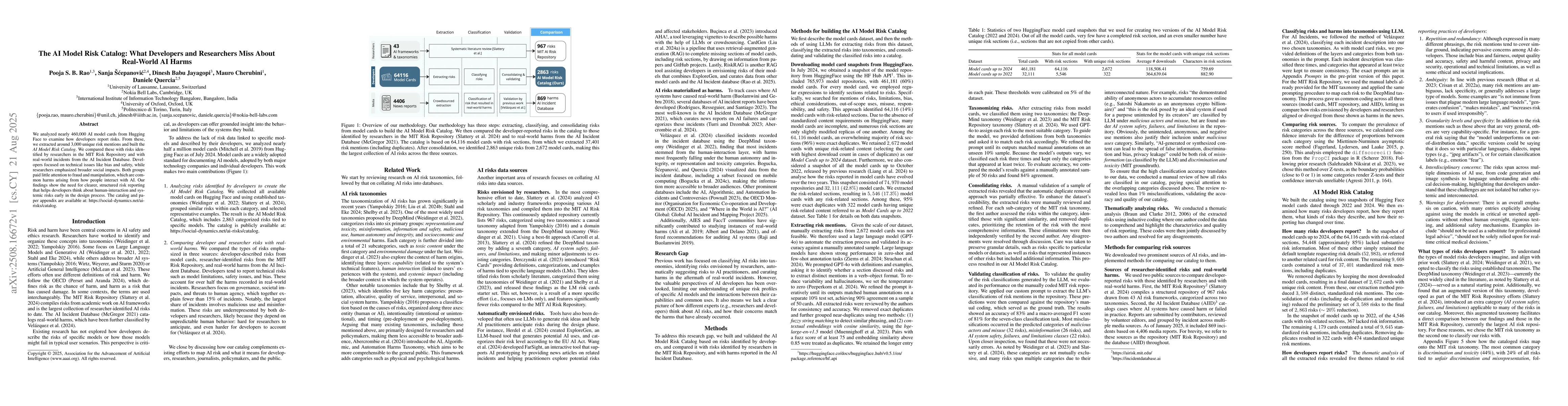 We analyzed nearly 460,000 AI model cards from Hugging Face to examine how developers report risks. From these, we extracted around 3,000 unique risk mentions and built the \emph{AI Model Risk Catalog}. We compared these with risks identified by researchers in the MIT Risk Repository and with real-world incidents from the AI Incident Database. Developers focused on technical issues like bias and safety, while researchers emphasized broader social impacts. Both groups paid little attention to fraud and manipulation, which are common harms arising from how people interact with AI. Our findings show the need for clearer, structured risk reporting that helps developers think about human-interaction and systemic risks early in the design process. The catalog and paper appendix are available at: https://social-dynamics.net/ai-risks/catalog.