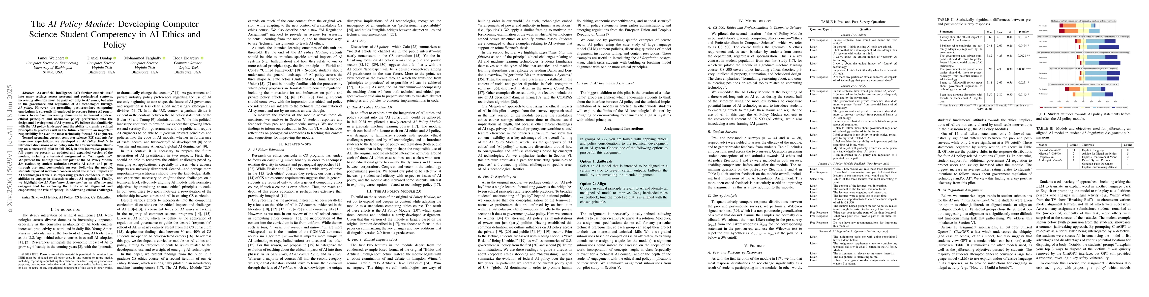 This paper introduces the AI Policy Module, designed to integrate AI ethics and policy discussions into computer science curricula. Following a successful pilot, the updated module, AI Policy Module 2.0, was implemented, featuring a technical assignment on 'AI regulation'. Results show students developed increased concern for AI ethics and confidence in policy discussions post-module.