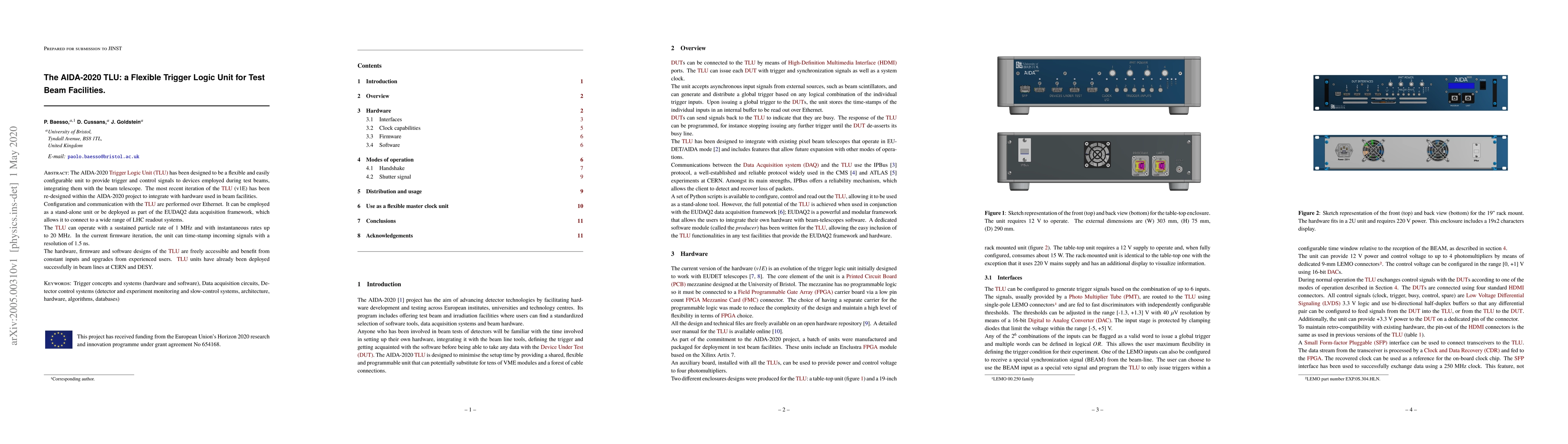 The AIDA-2020 TLU offers a novel, flexible, and configurable trigger logic unit for test beam facilities, integrating seamlessly with beam telescopes and various LHC readout systems via Ethernet.