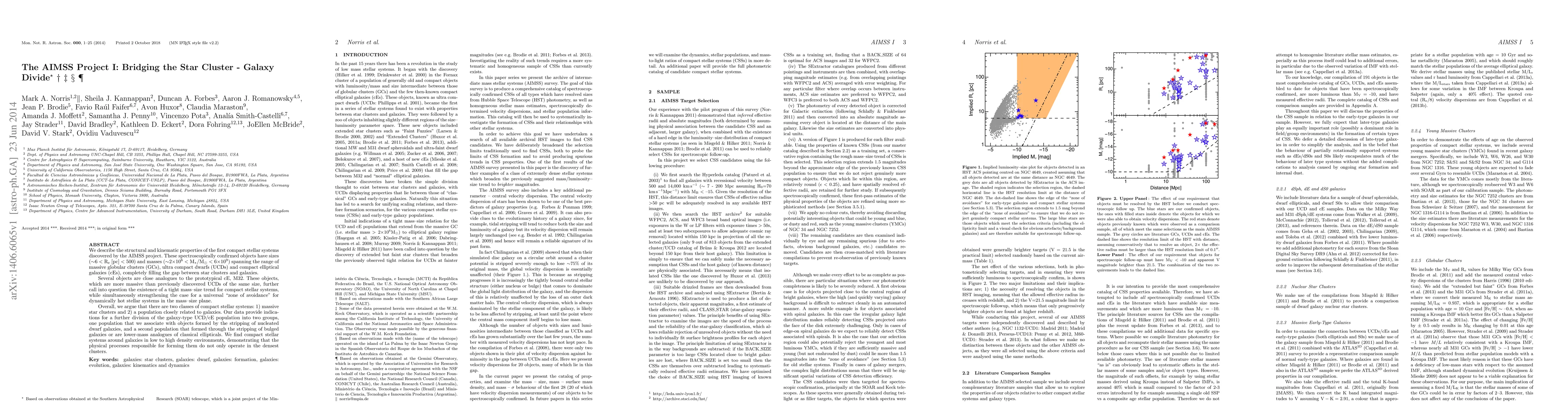 We describe the structural and kinematic properties of the first compact stellar systems discovered by the AIMSS project. These spectroscopically confirmed objects have sizes ($\sim$6 $<$ R$_{\rm e}$ [pc] $<$ 500) and masses ($\sim$2$\times$10$^{6}$ $<$ M$_*$/M$_\odot$ $<$ 6$\times$10$^{9}$) spanning the range of massive globular clusters (GCs), ultra compact dwarfs (UCDs) and compact elliptical galaxies (cEs), completely filling the gap between star clusters and galaxies. Several objects are close analogues to the prototypical cE, M32. These objects, which are more massive than previously discovered UCDs of the same size, further call into question the existence of a tight mass-size trend for compact stellar systems, while simultaneously strengthening the case for a universal "zone of avoidance" for dynamically hot stellar systems in the mass-size plane. Overall, we argue that there are two classes of compact stellar systems: 1) massive star clusters and 2) a population closely related to galaxies. Our data provide indications for a further division of the galaxy-type UCD/cE population into two groups, one population that we associate with objects formed by the stripping of nucleated dwarf galaxies, and a second population that formed through the stripping of bulged galaxies or are lower-mass analogues of classical ellipticals. We find compact stellar systems around galaxies in low to high density environments, demonstrating that the physical processes responsible for forming them do not only operate in the densest clusters.