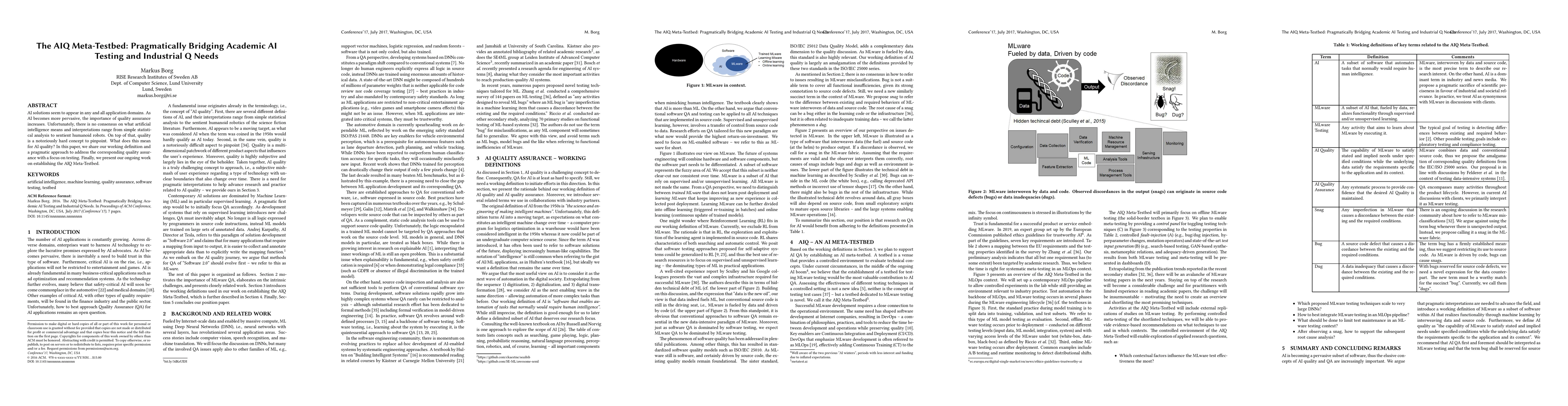 This paper proposes a working definition for AI quality and introduces a pragmatic approach to quality assurance through testing. It also outlines the development of the AIQ Meta-Testbed to bridge academic AI testing and industrial quality needs.