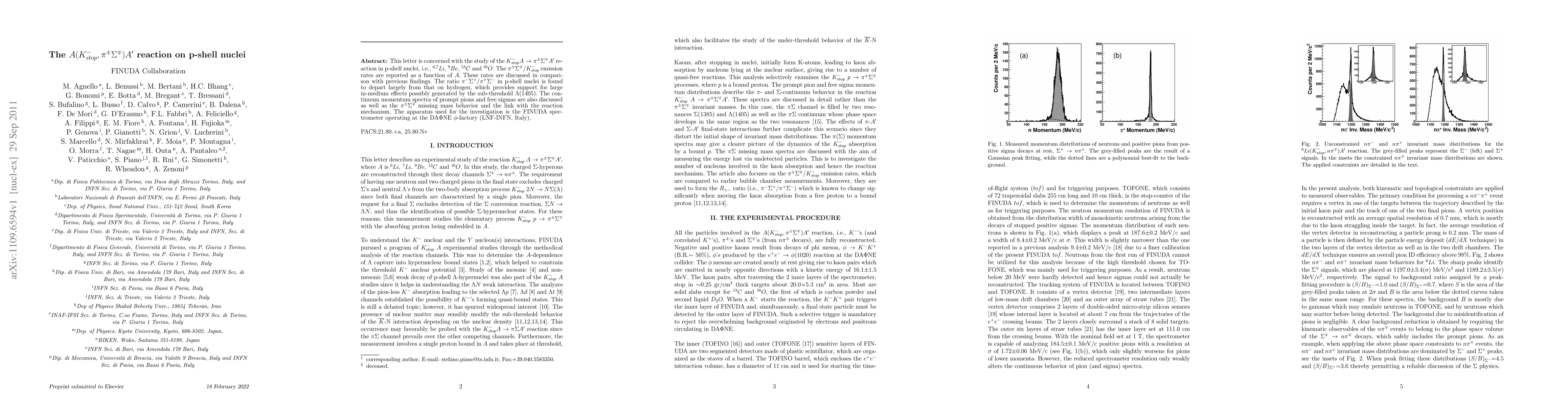 This study investigates a nuclear reaction in p-shell nuclei, revealing large in-medium effects and differing ratios of particle pairs compared to hydrogen, suggesting sub-threshold Lambda(1405) involvement.