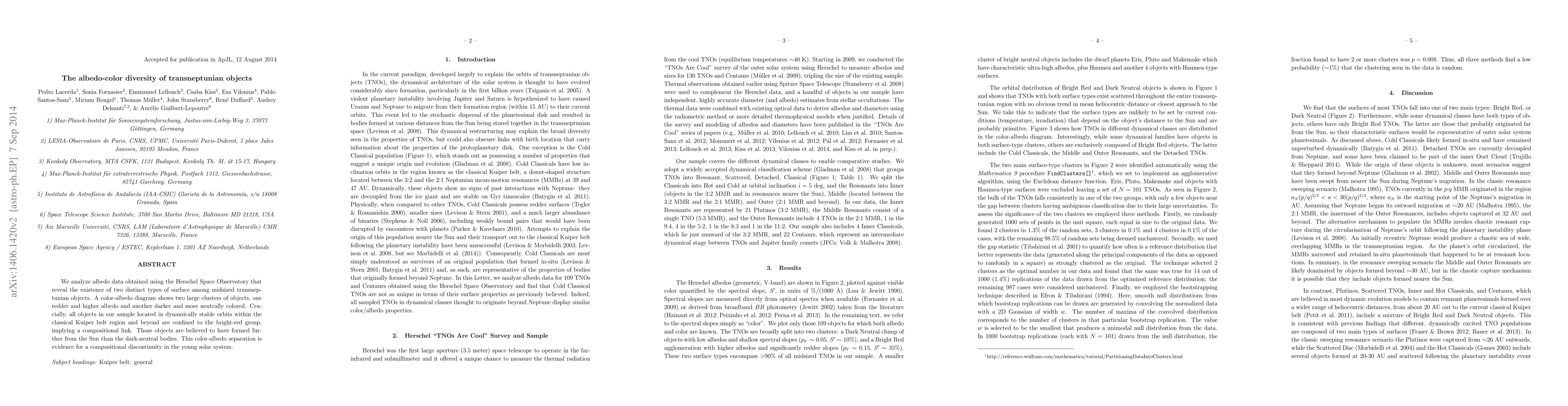 A study using Herschel Space Observatory data reveals two distinct types of surface among midsized transneptunian objects, with brighter, redder bodies likely formed farther from the Sun than darker, more neutrally colored ones.
