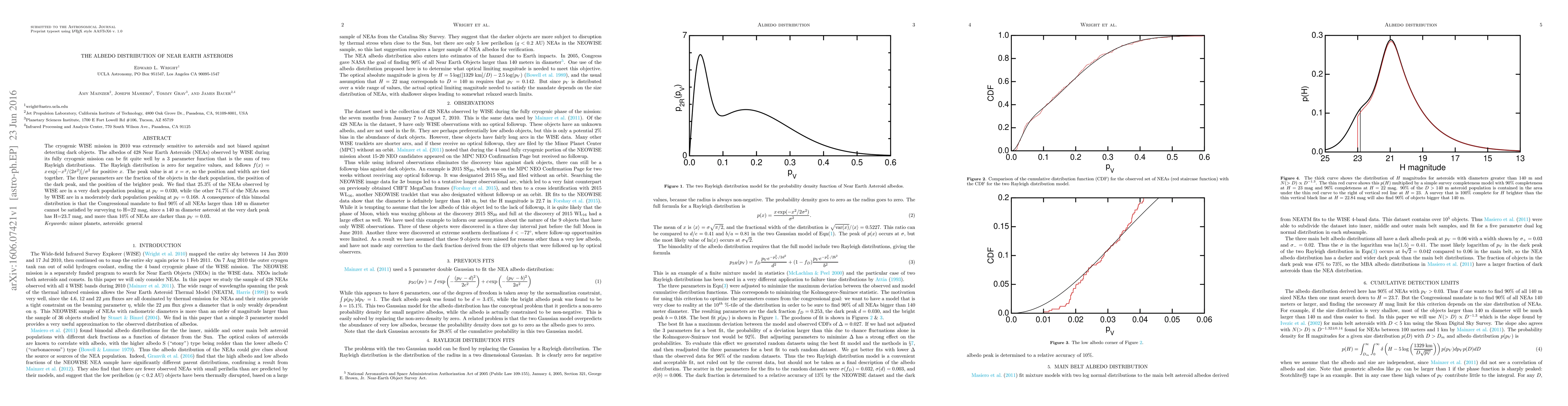 A study of 428 Near Earth Asteroids found that 25% are very dark, peaking at brightness value p_V = 0.03, while the rest are moderately dark with a peak brightness value of p_V = 0.168.