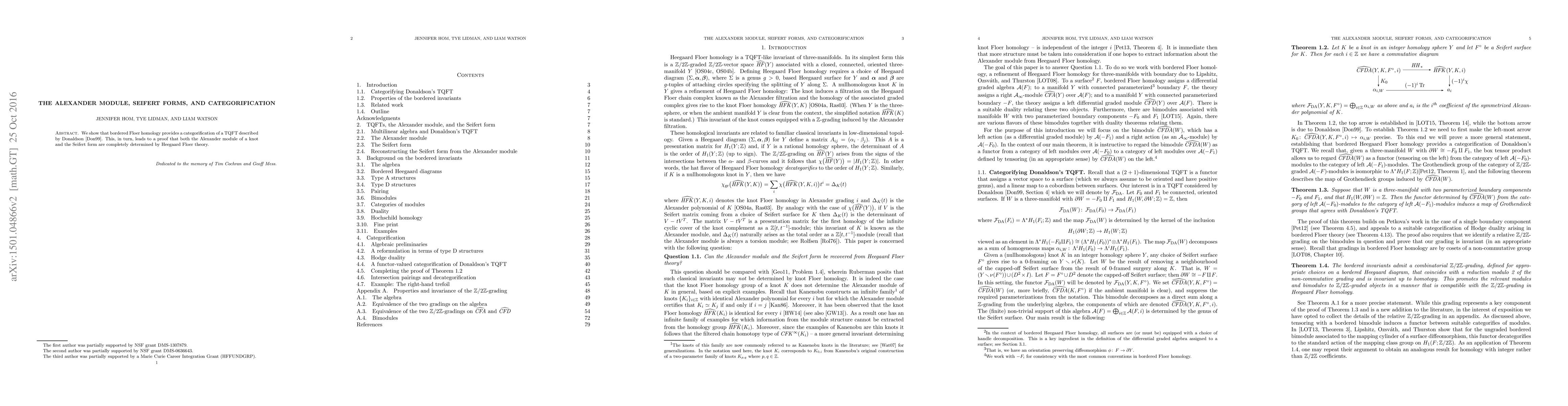 This paper shows that bordered Floer homology categorifies a TQFT described by Donaldson, leading to a proof that the Alexander module and Seifert form are determined by Heegaard Floer theory.