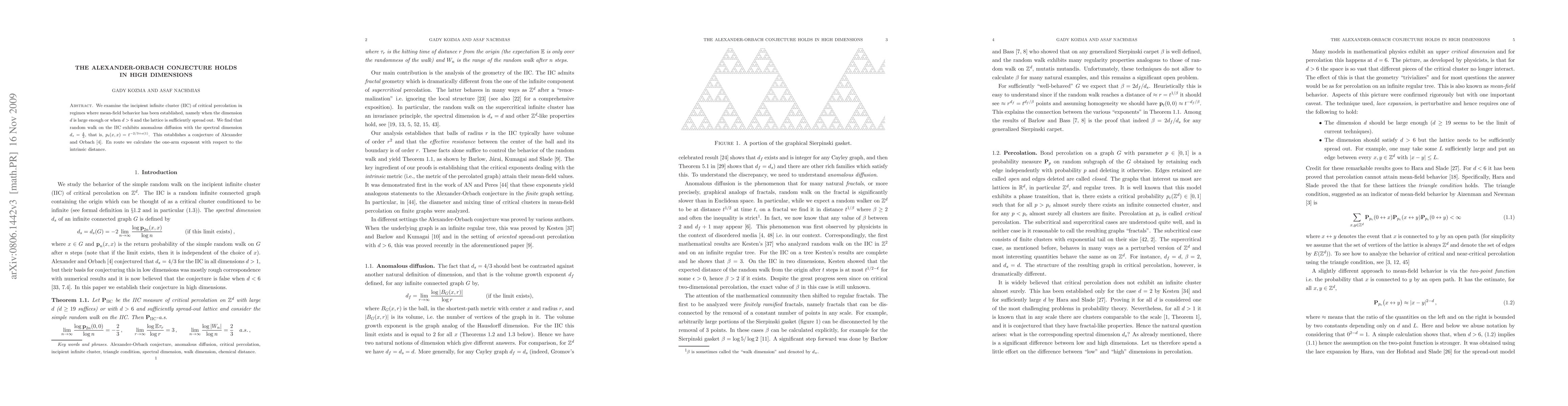 Researchers confirm a long-standing conjecture in critical percolation theory, showing that random walks on infinite clusters exhibit anomalous diffusion with a spectral dimension of 4/3, supporting the Alexander-Orbach conjecture.
