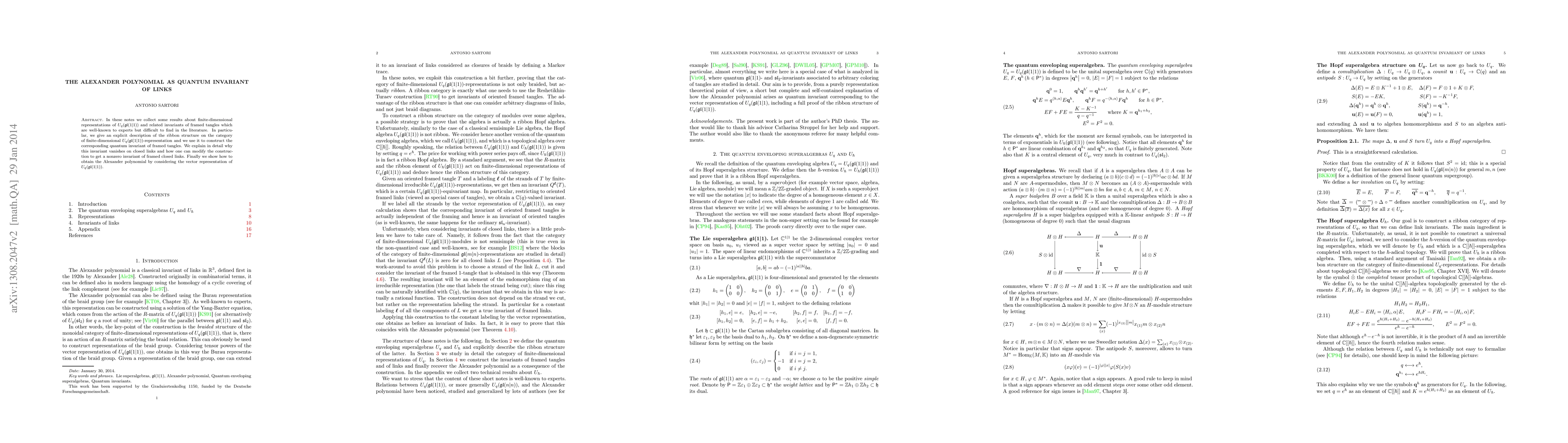 In these notes we collect some results about finite dimensional representations of $U_q(\mathfrak{gl}(1|1))$ and related invariants of framed tangles which are well-known to experts but difficult to find in the literature. In particular, we give an explicit description of the ribbon structure on the category of finite dimensional $U_q(\mathfrak{gl}(1|1))$-representation and we use it to construct the corresponding quantum invariant of framed tangles. We explain in detail why this invariant vanishes on closed links and how one can modify the construction to get a nonzero invariant of framed closed links. Finally we show how to obtain the Alexander polynomial by considering the vector representation of $U_q(\mathfrak{gl}(1|1))$.
