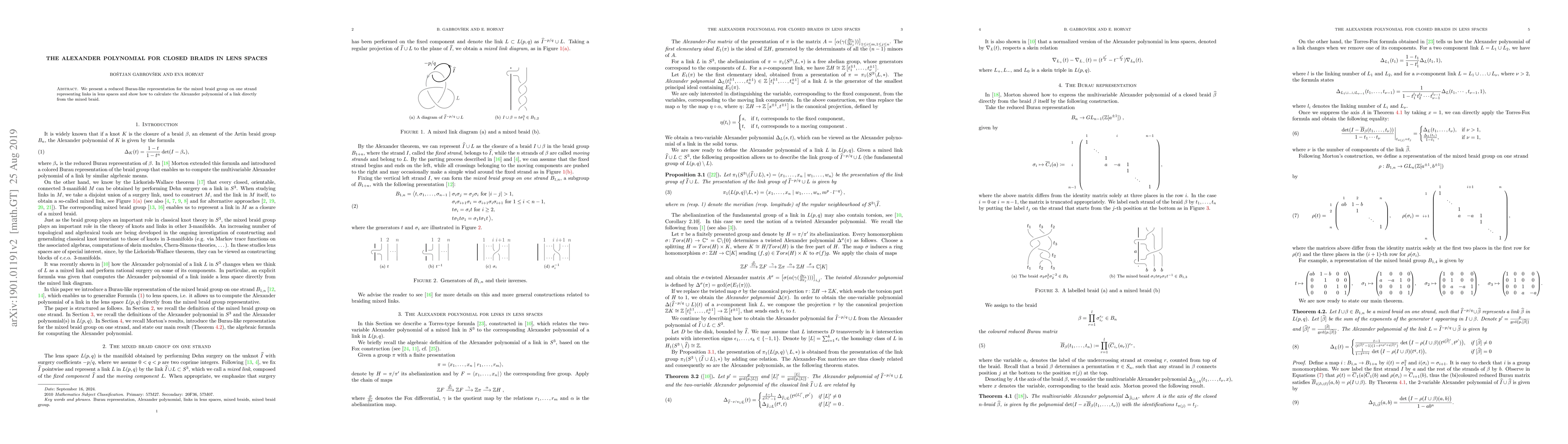 Summary: This paper introduces a simplified Burau-like representation for the mixed braid group on one strand, enabling the direct calculation of the Alexander polynomial for links in lens spaces. The method provides a novel approach to understanding the topological properties of such links.