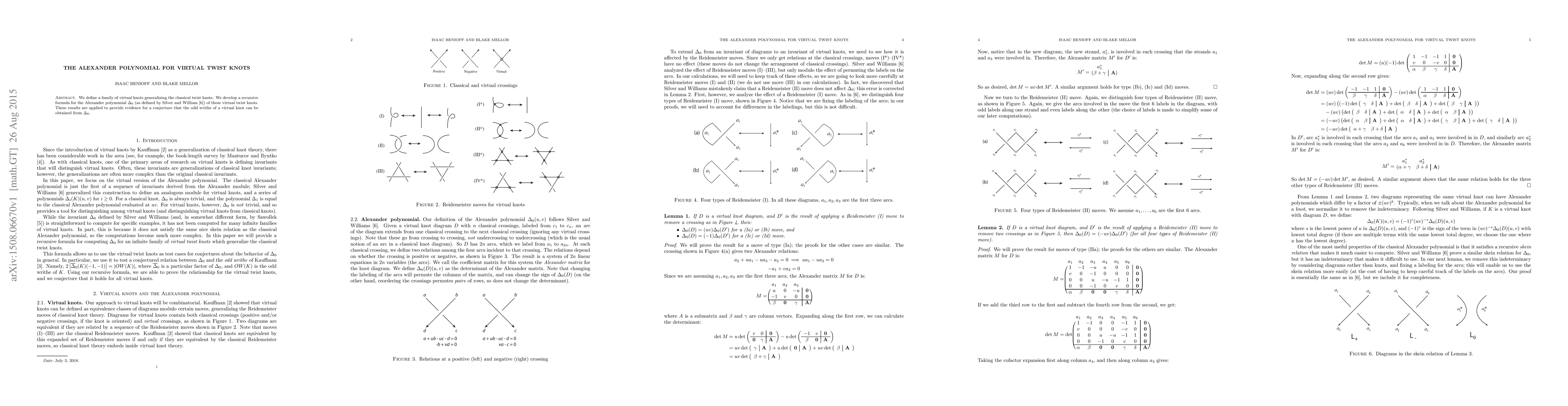 This paper defines a class of virtual knots extending classical twist knots and establishes a recursive formula for their Alexander polynomial $\Delta_0$. It uses these findings to support a conjecture linking the odd writhe of virtual knots to $\Delta_0$.