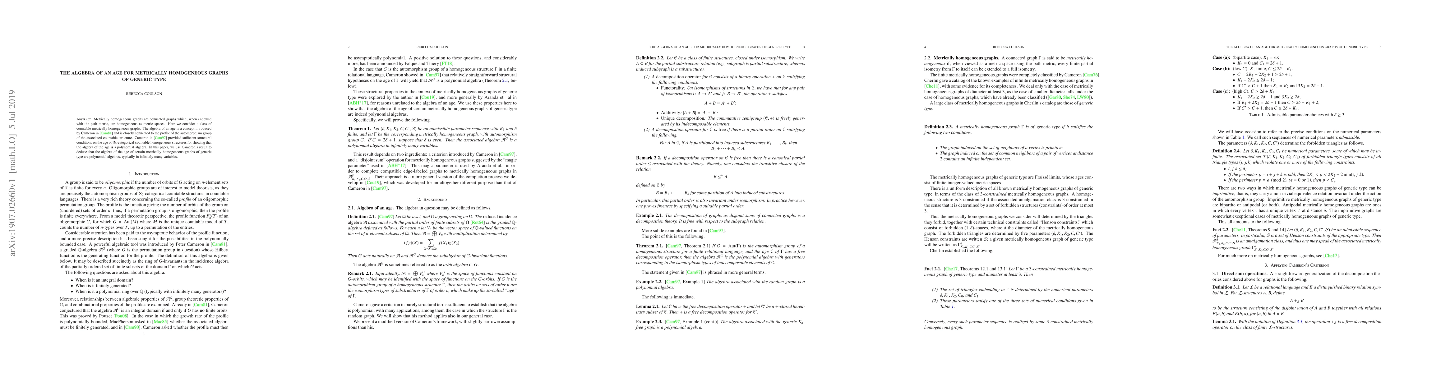 Researchers prove that a specific class of countable metrically homogeneous graphs have polynomial algebra age structures, with implications for understanding the properties of these graphs.
