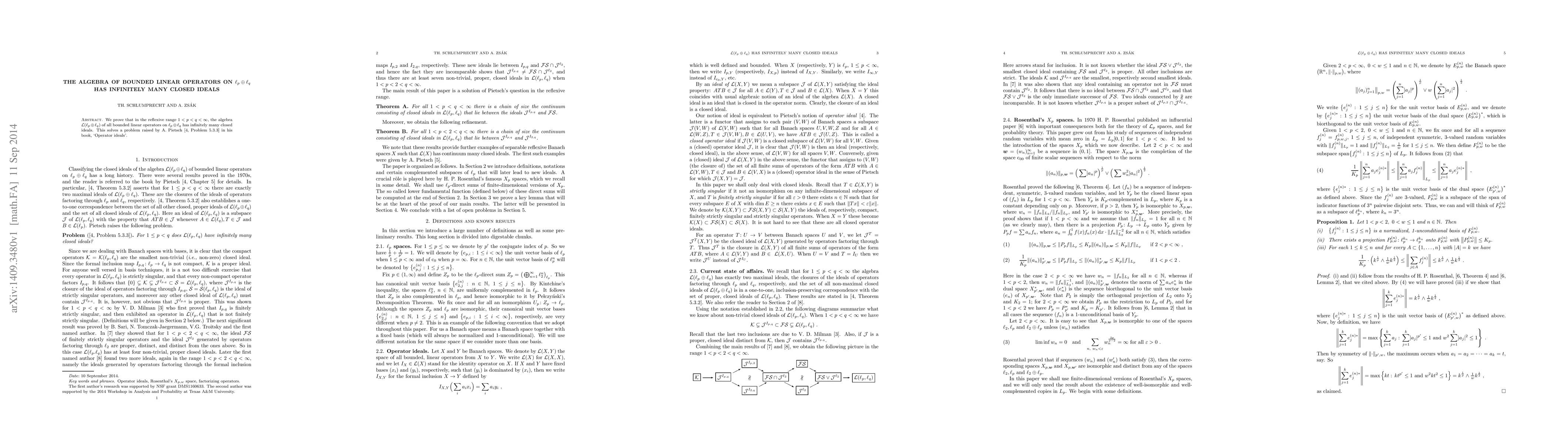 Summary: This paper demonstrates that the algebra of bounded linear operators on $\ell_p\oplus\ell_q$ for $1<p<q<\infty$ contains infinitely many closed ideals, resolving a question posed by A. Pietsch in his book `Operator ideals'.