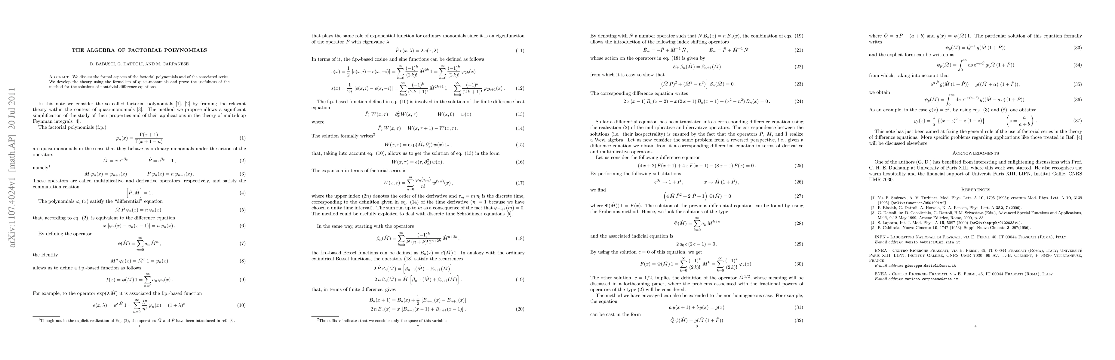 We discuss the formal aspects of the factorial polynomials and of the associated series. We develop the theory using the formalism of quasi-monomials and prove the usefulness of the method for the solutions of nontrivial difference equations.